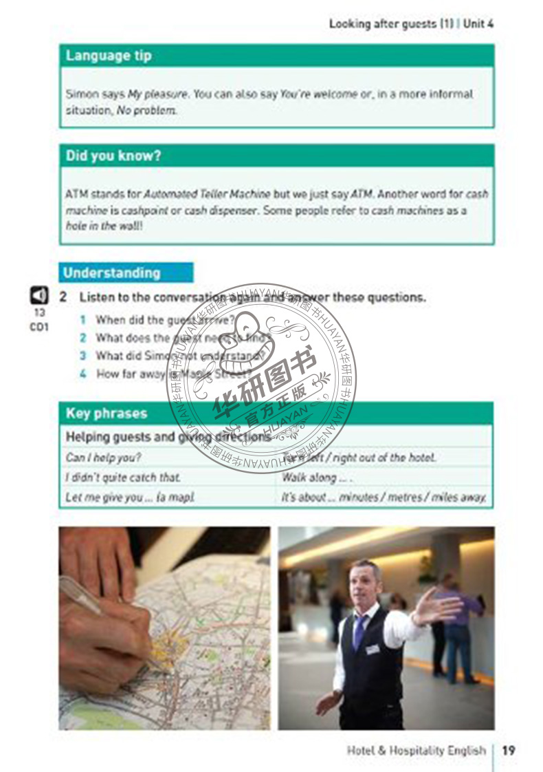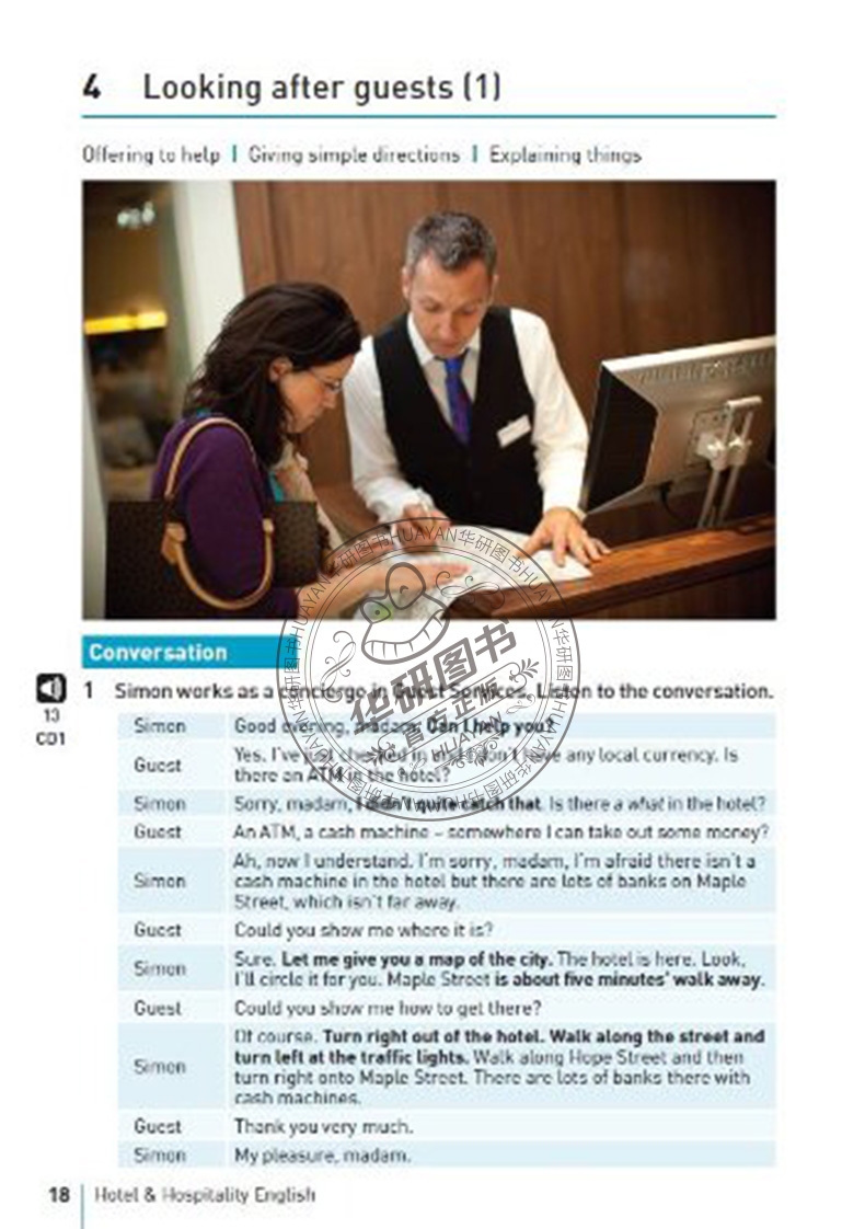This unique self-study course is for elementary-level adults who need English for the hospitality industry, such as workers in hotels and restaurants. Ideal for front-line staff who need to communicate confidently in English to maintain good customer relations.