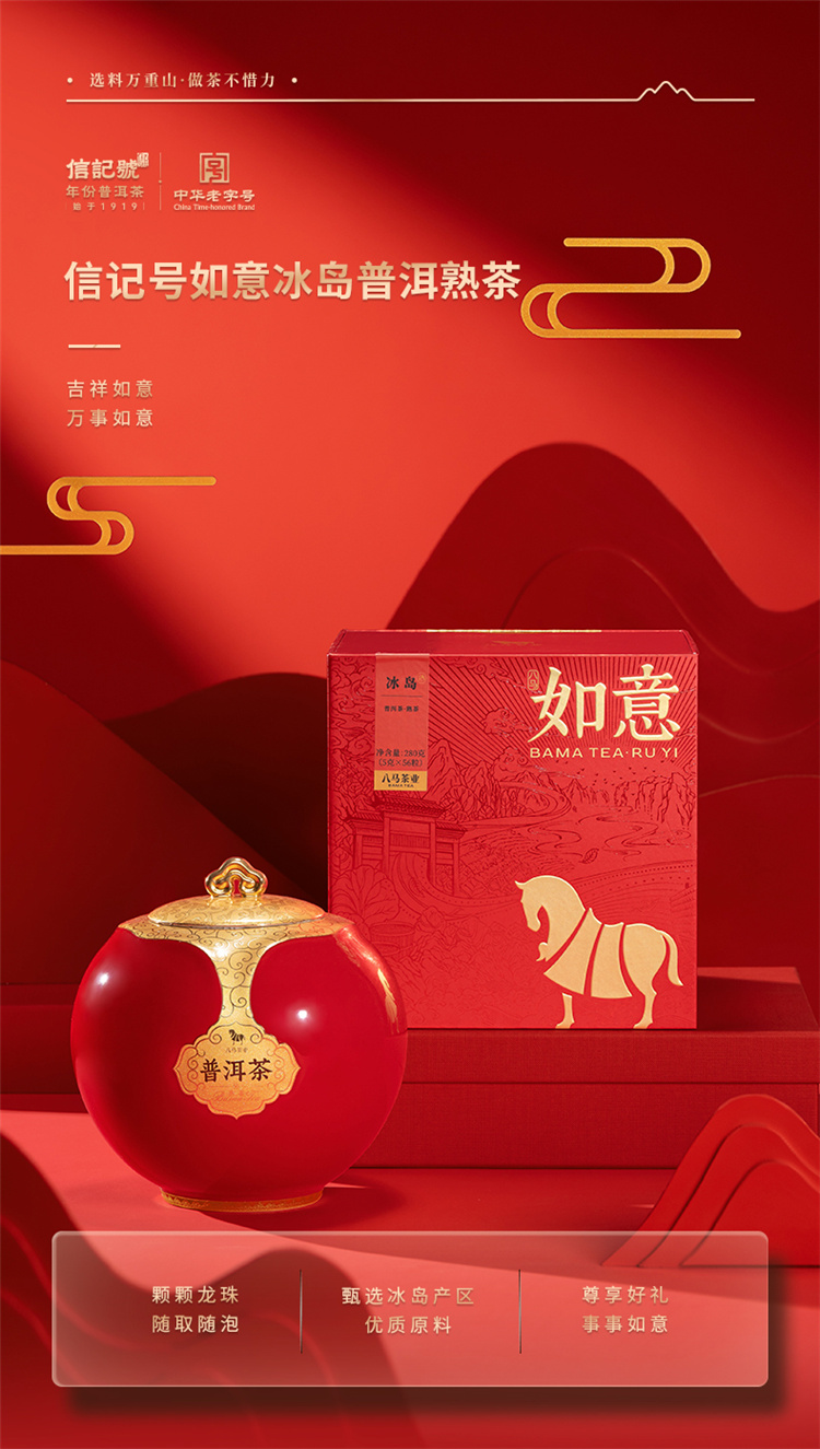 八马茶业|如意系列红茶金骏眉冰岛普洱茶(熟茶)送人礼盒装