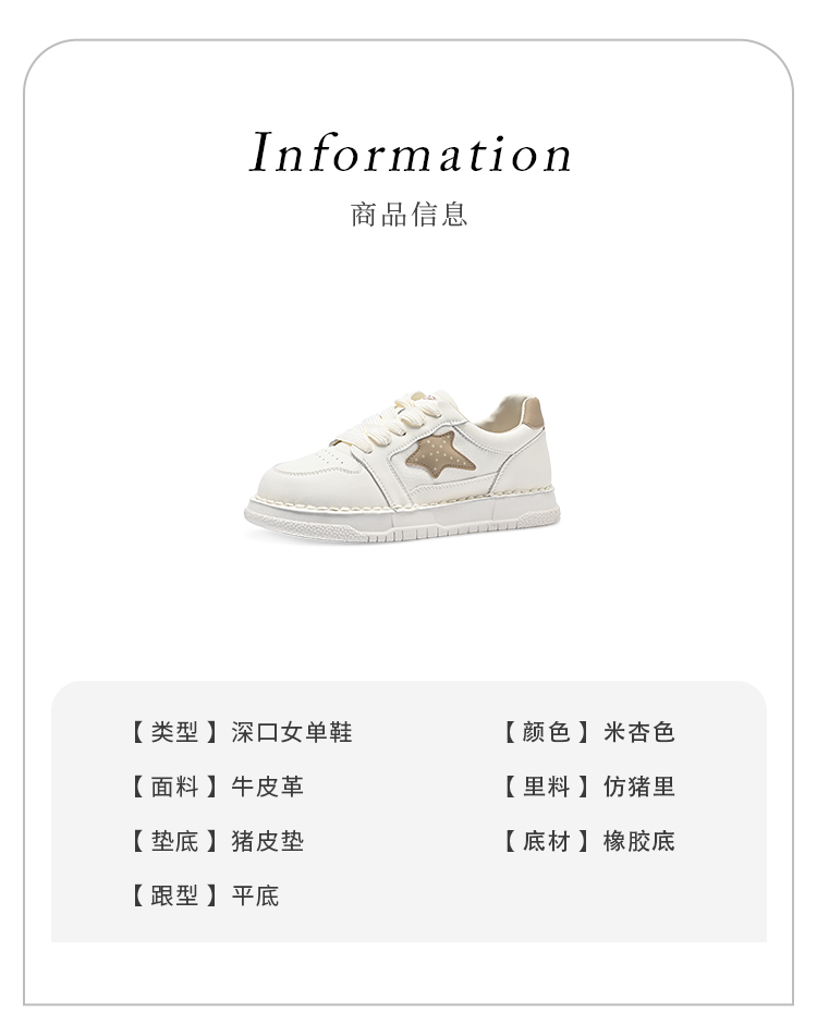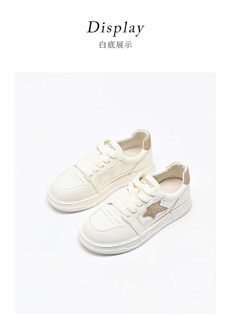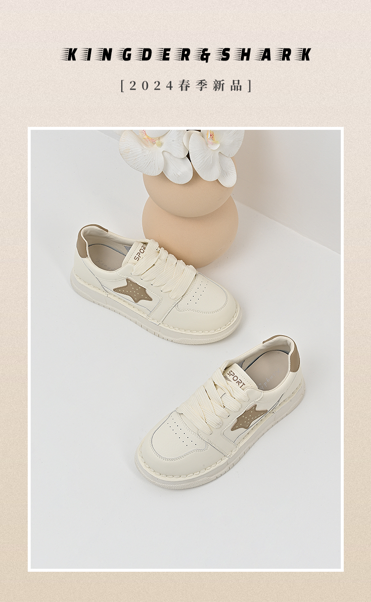 2024经典鲨春季女鞋新款星星设计感时尚小白鞋KW279-D17081