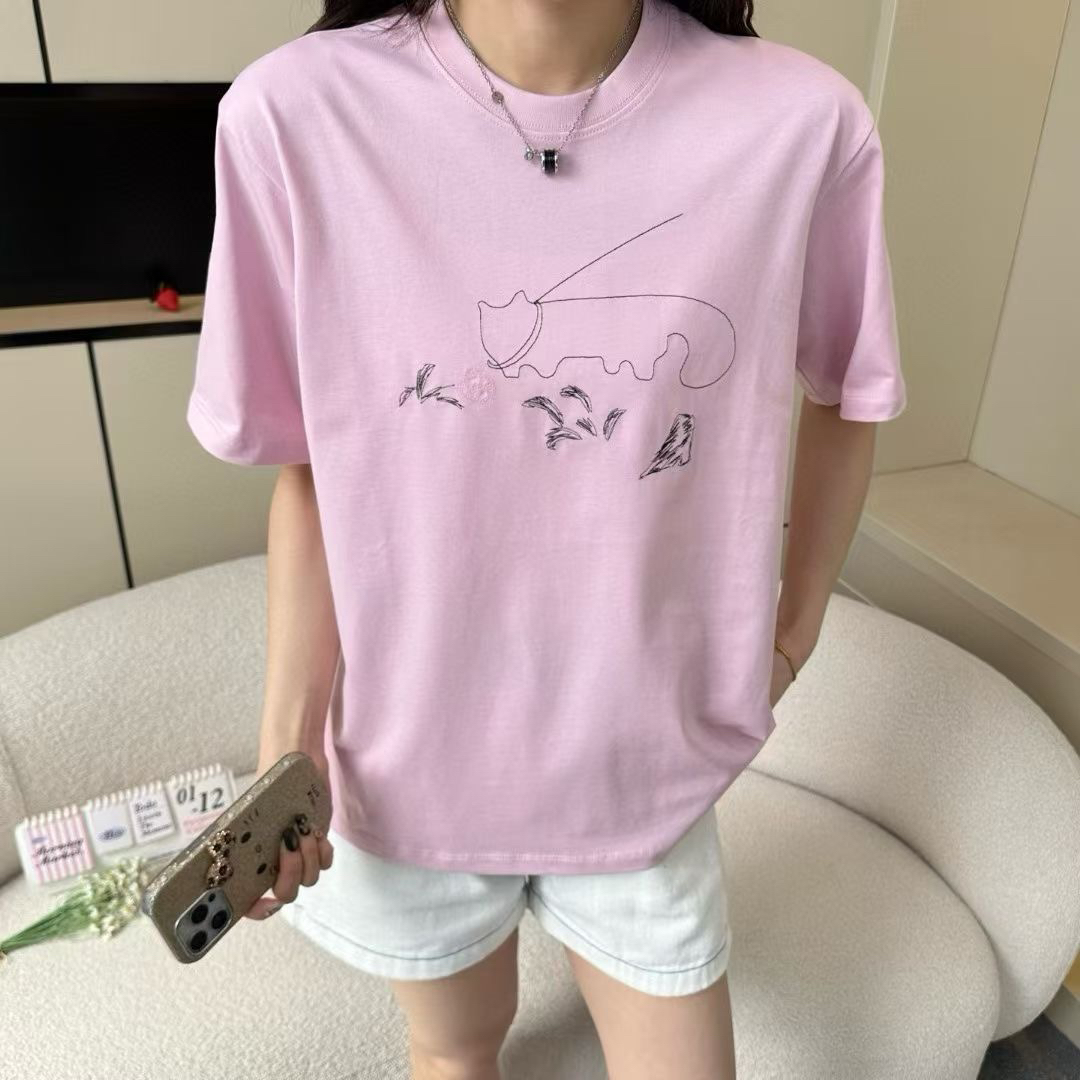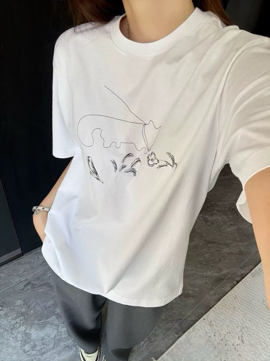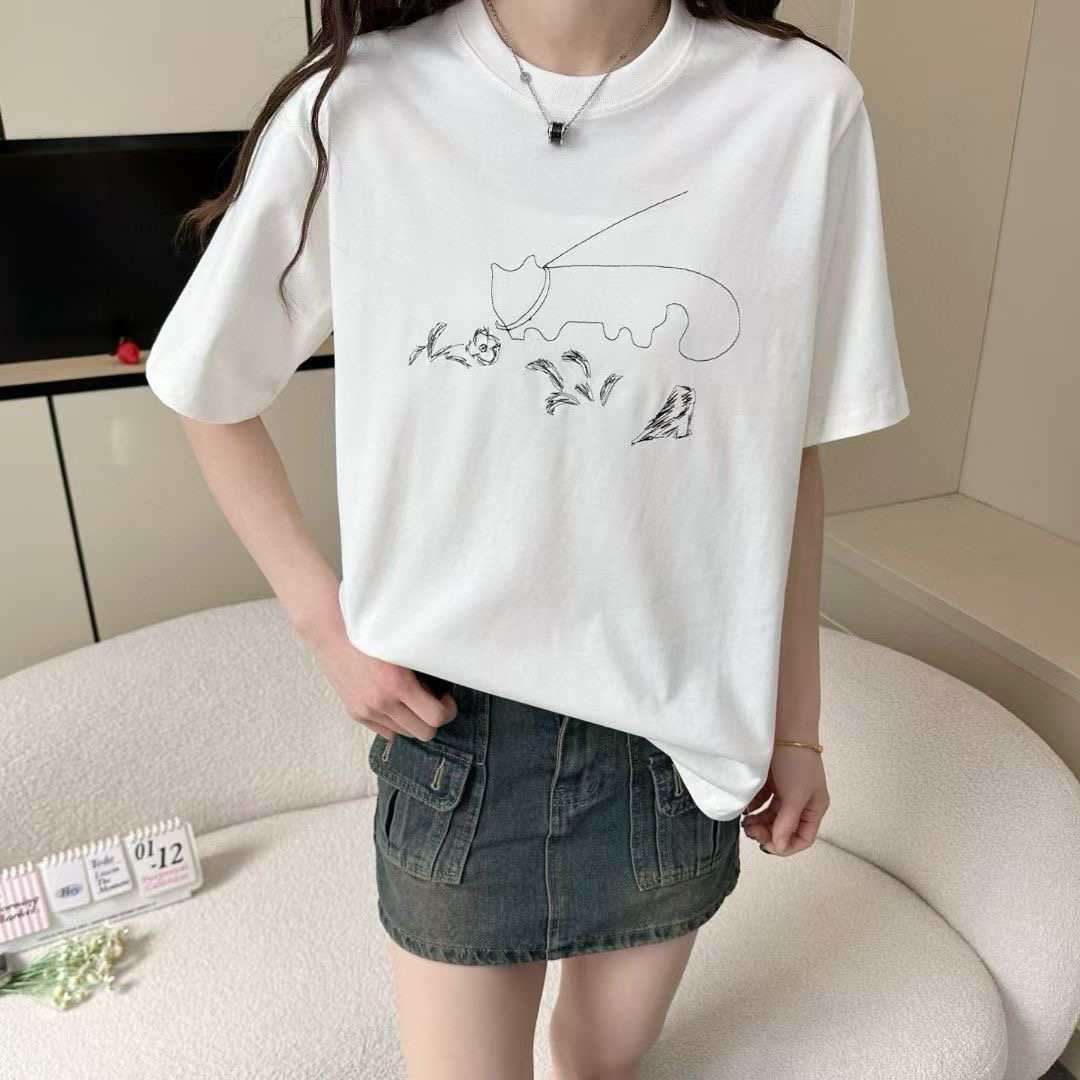 JNBY 江南布衣可爱线条 刺绣猫咪 圆领短袖T恤