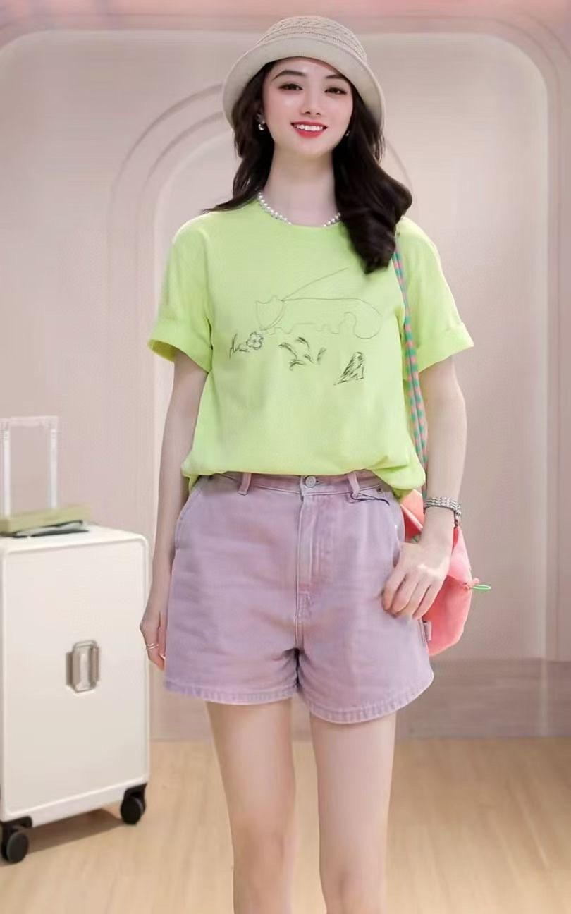 简约圆领与利落短袖线条始终规整,轻松展现随性自在风格