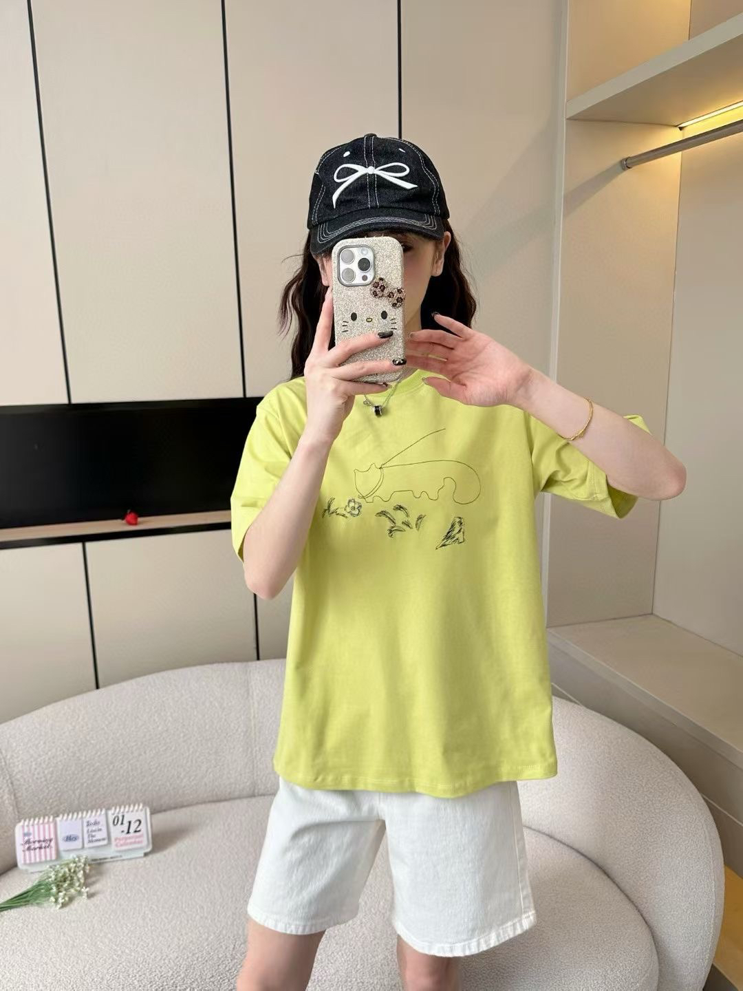 阔袖宽松,尤其修饰手臂肩膀线条,完美遮住松垮的肉肉,线条猫咪展现个性与趣味