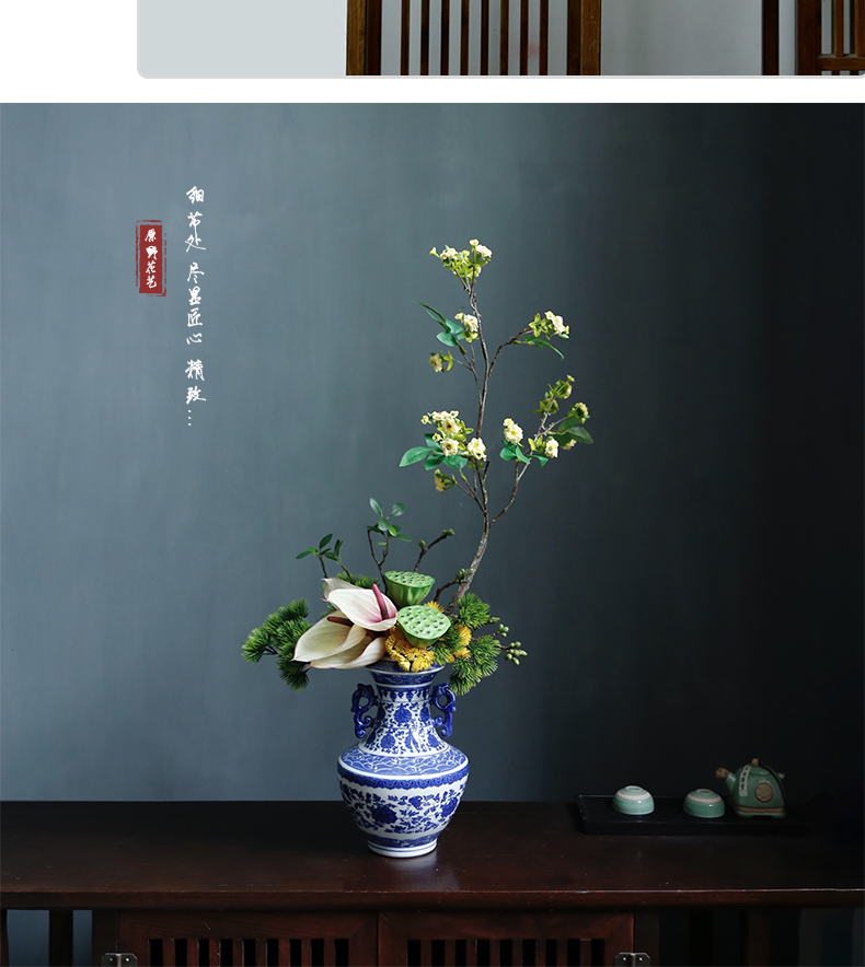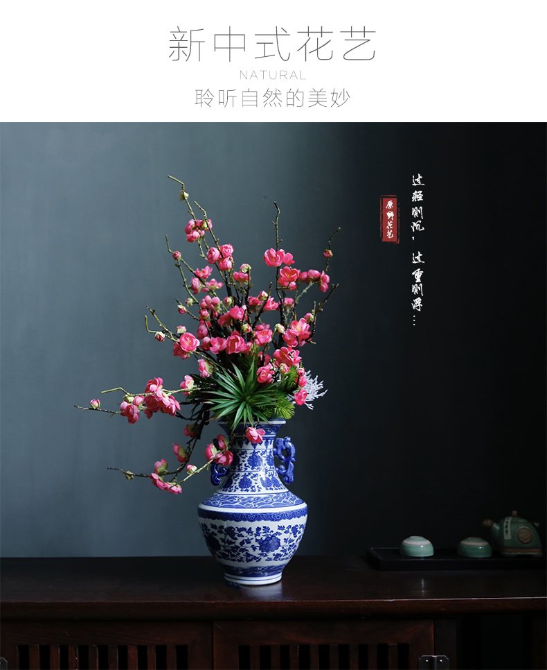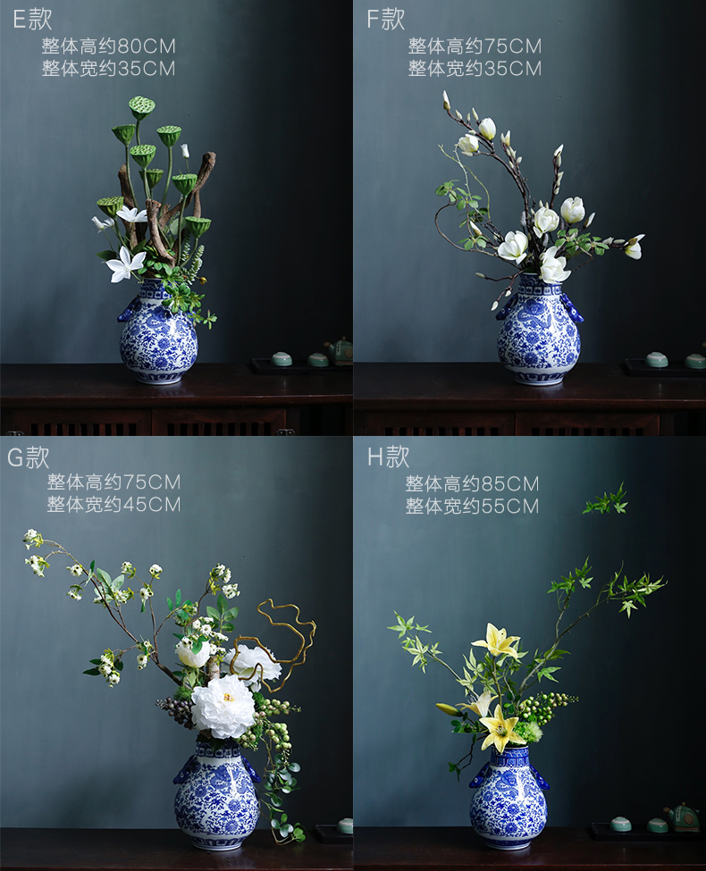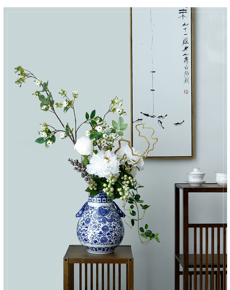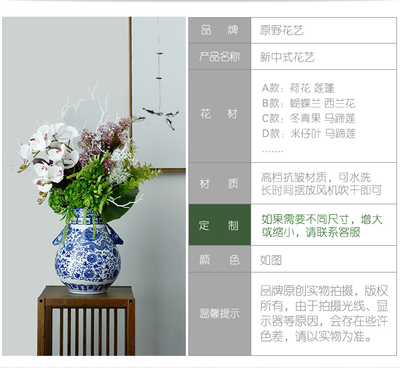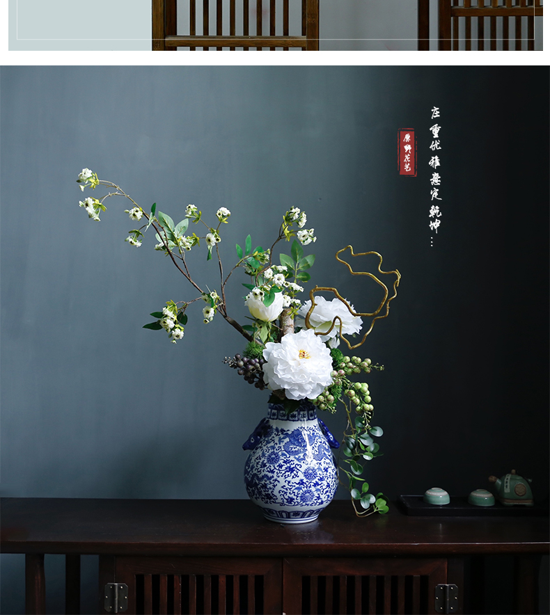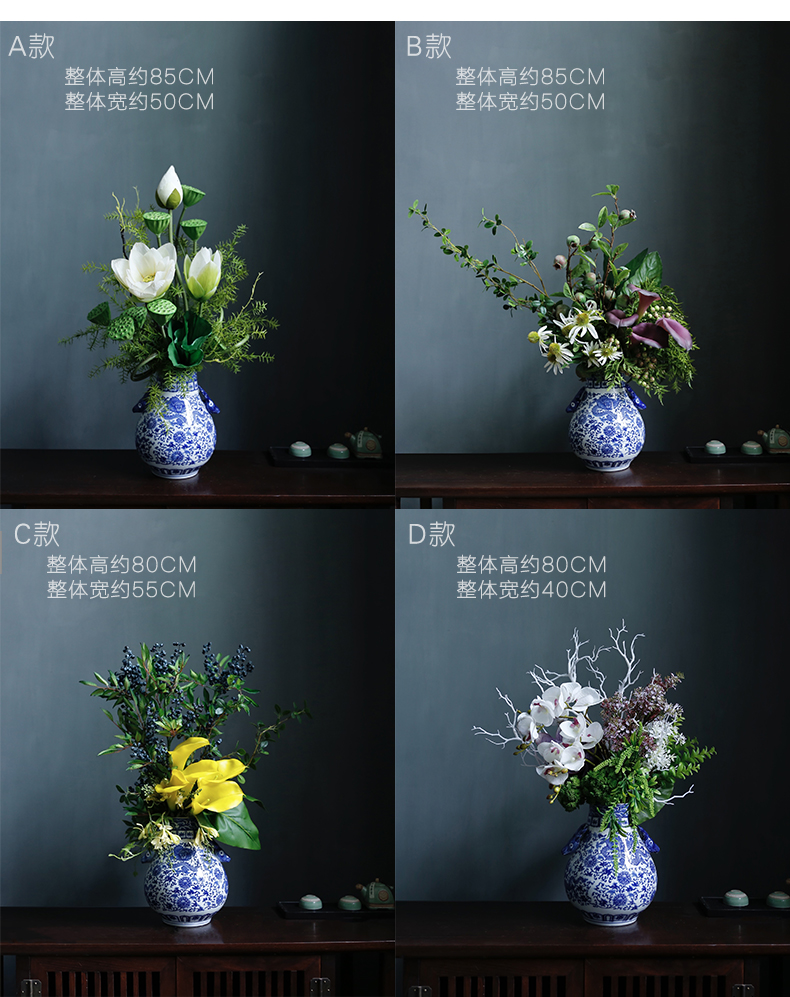新中式高档仿真花假花青花瓷样板房酒店前台客厅茶几装饰花摆设件