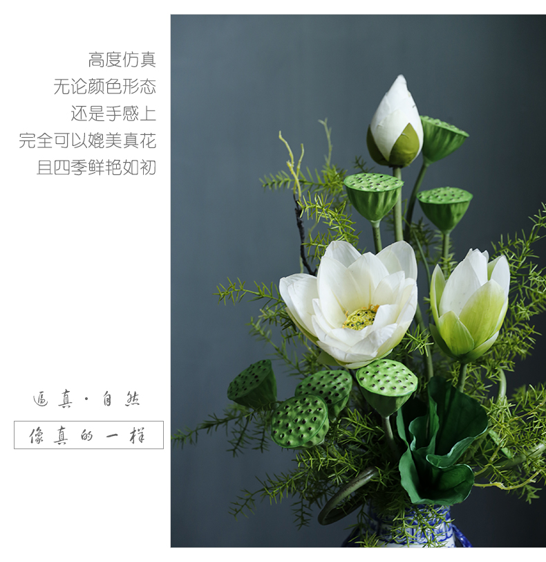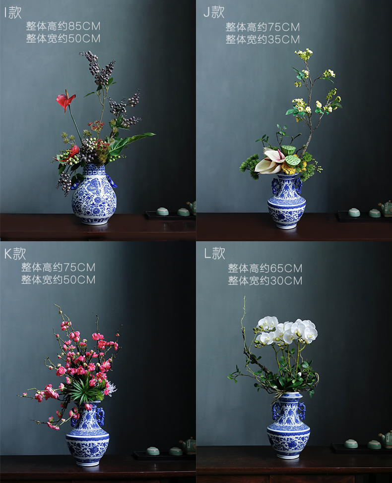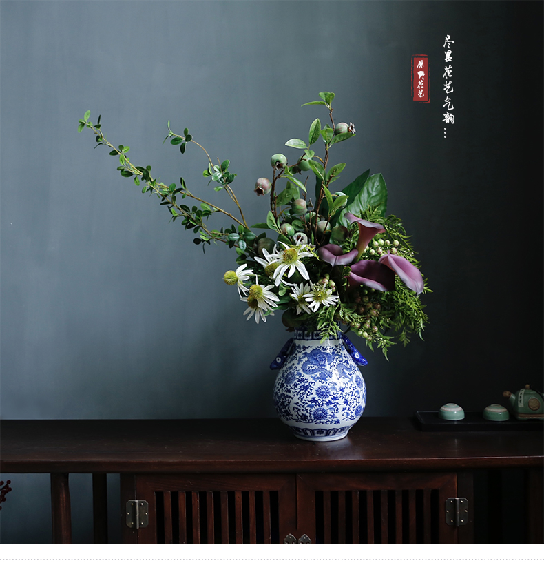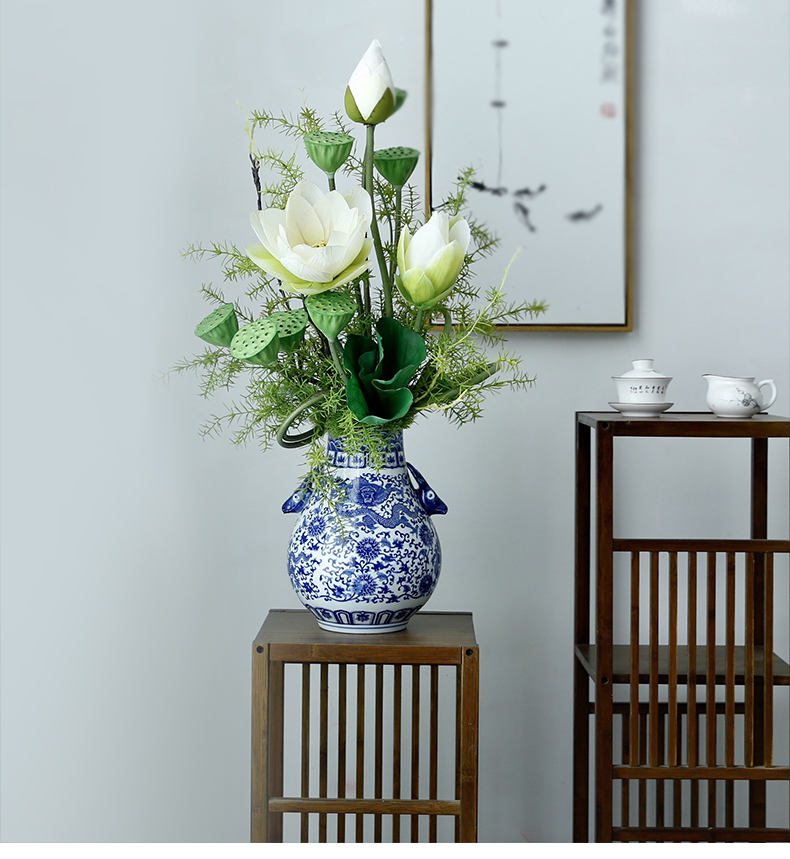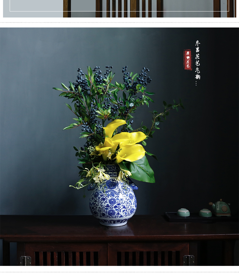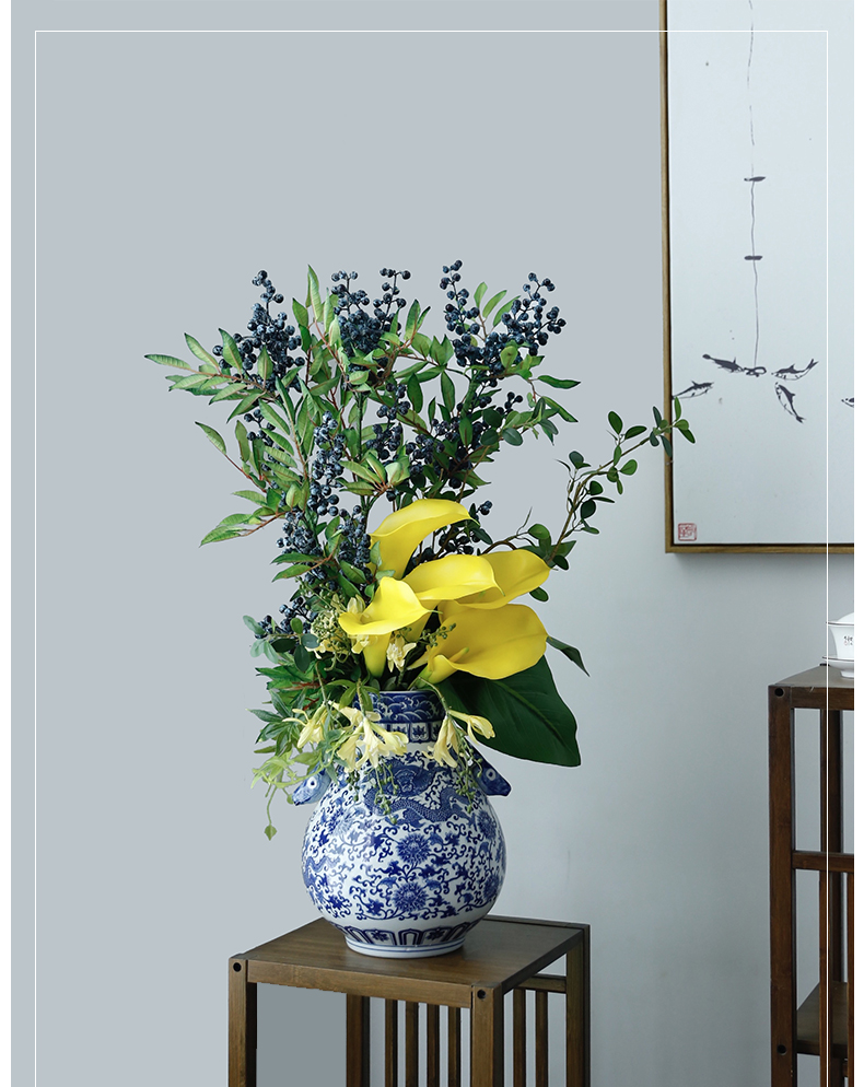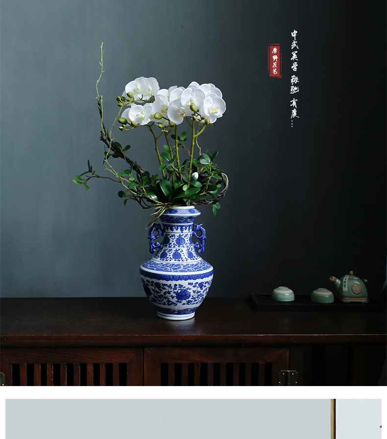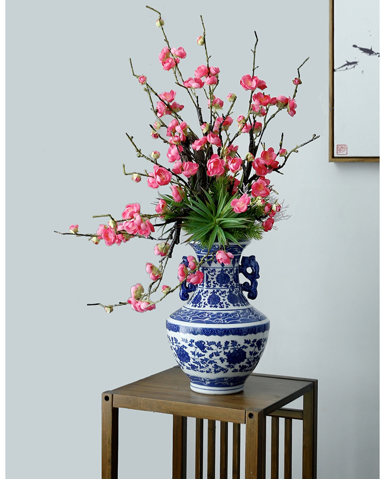 新中式高档仿真花假花青花瓷样板房酒店前台客厅茶几装饰花摆设件