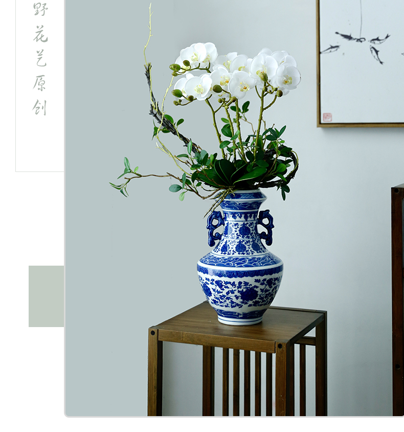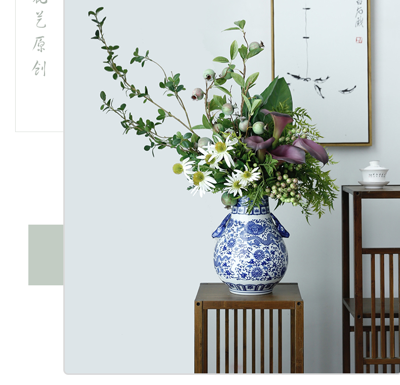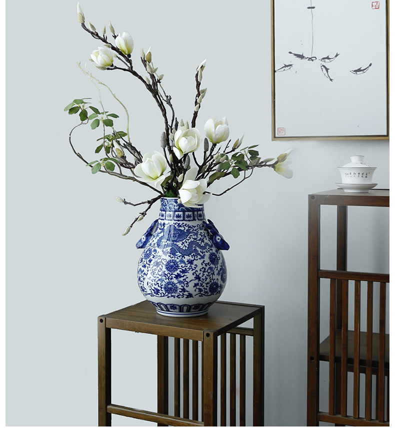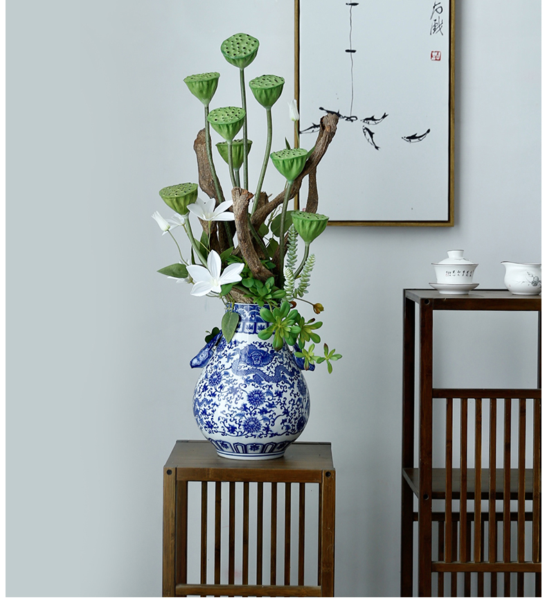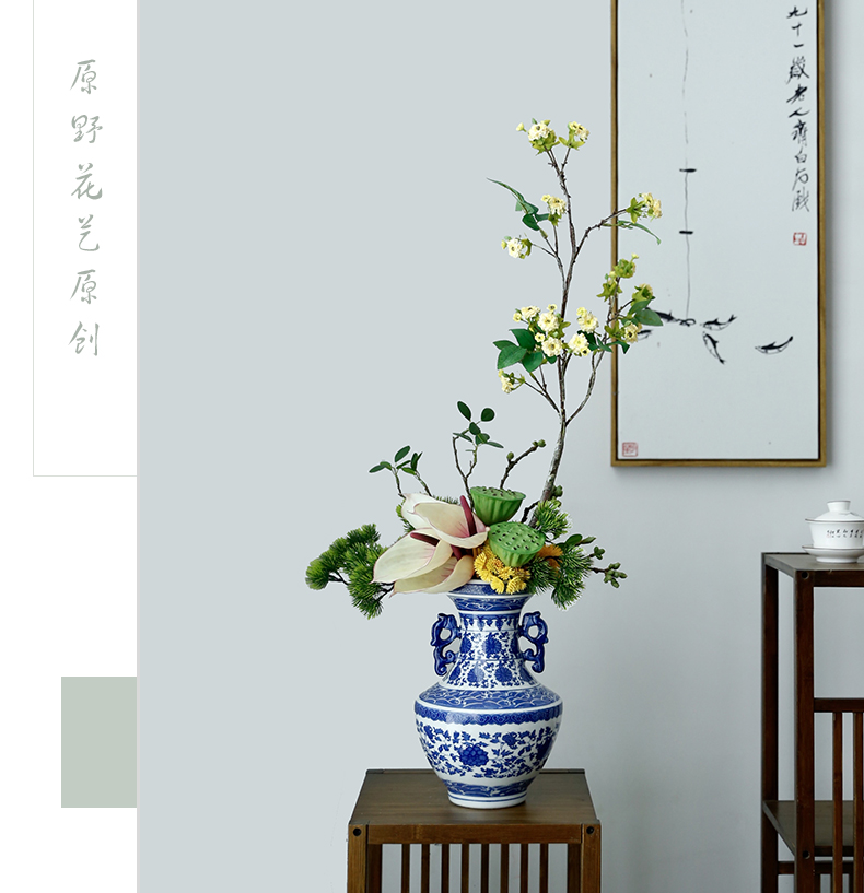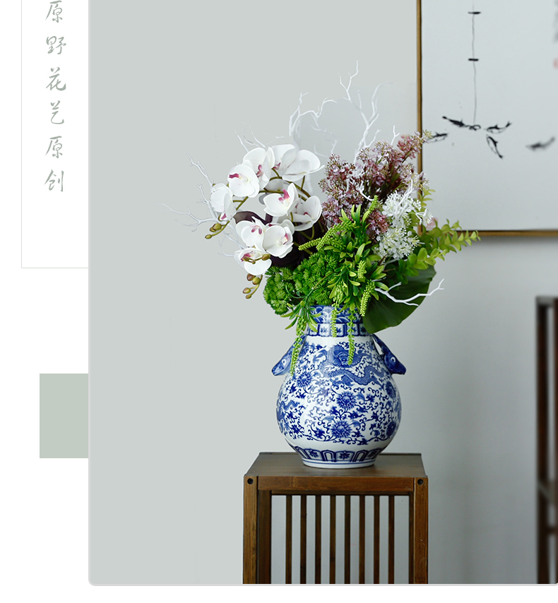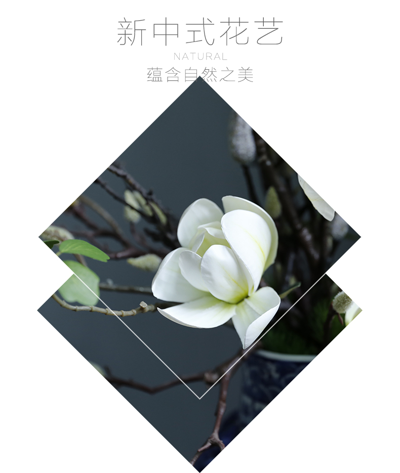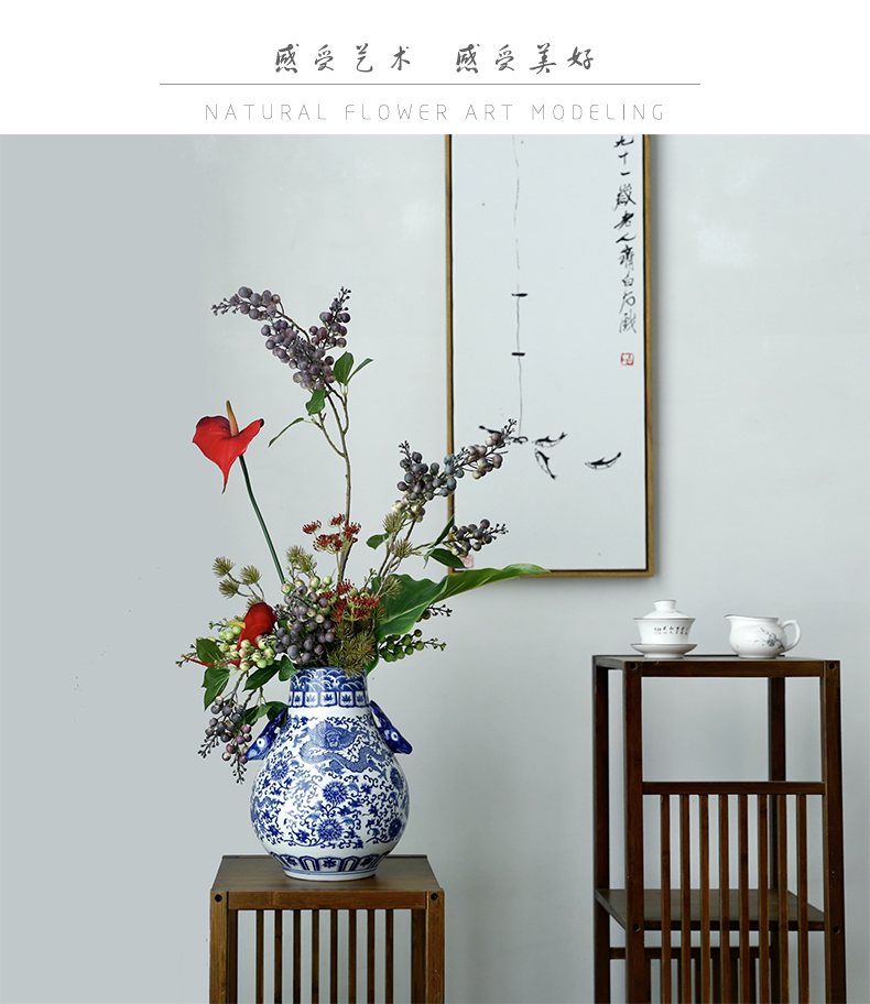 新中式高档仿真花假花青花瓷样板房酒店前台客厅茶几装饰花摆设件