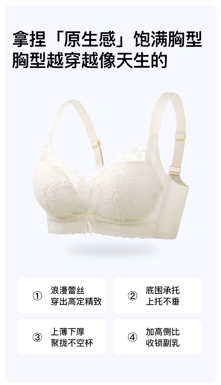A2-【A-B杯】【小胸聚拢显大】穿出圆润胸型内衣女聚拢防下垂收副乳调整型文胸 清漪婉柔