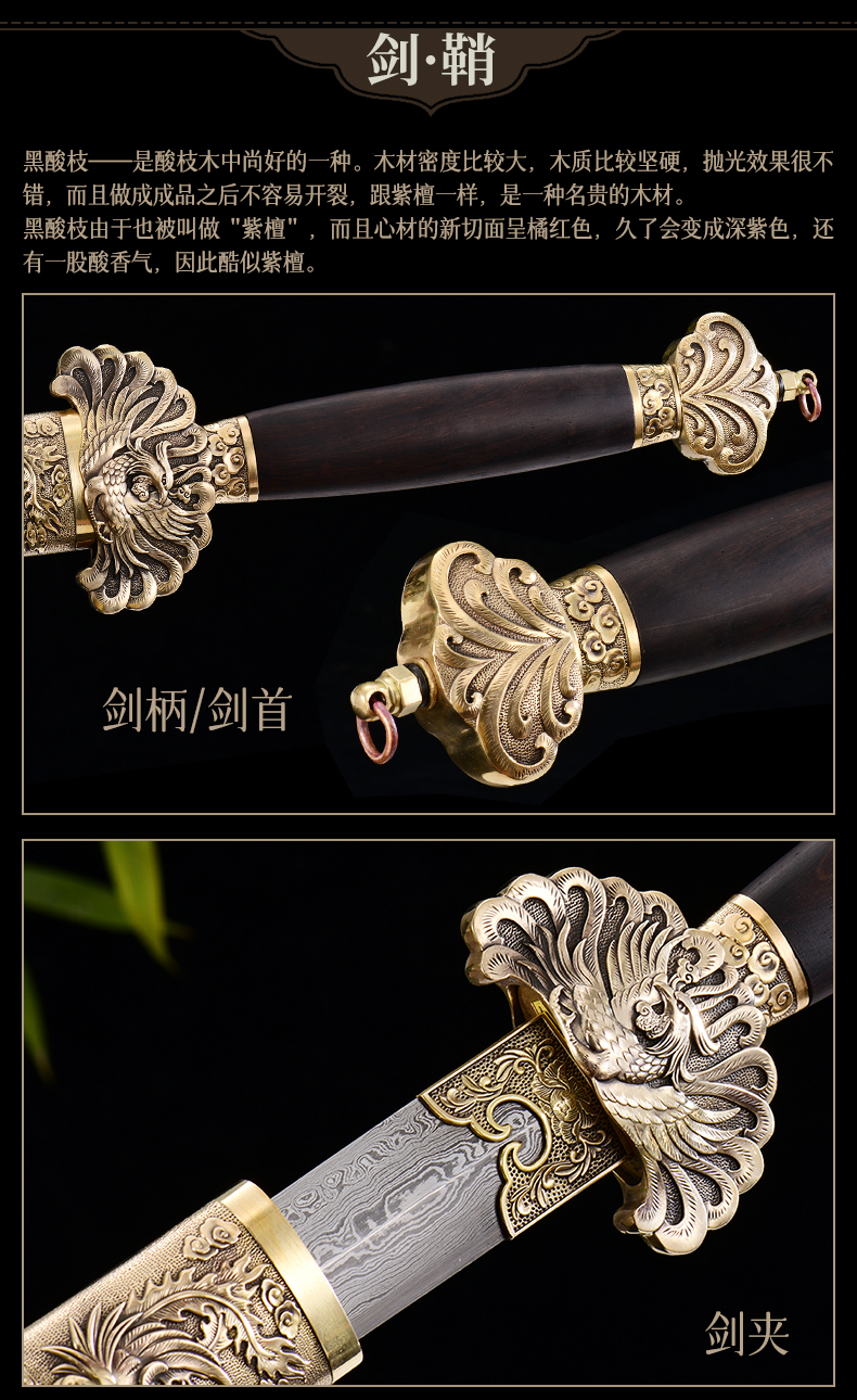 龙泉宝剑厂百炼花纹钢凤舞请剑(未开刃)