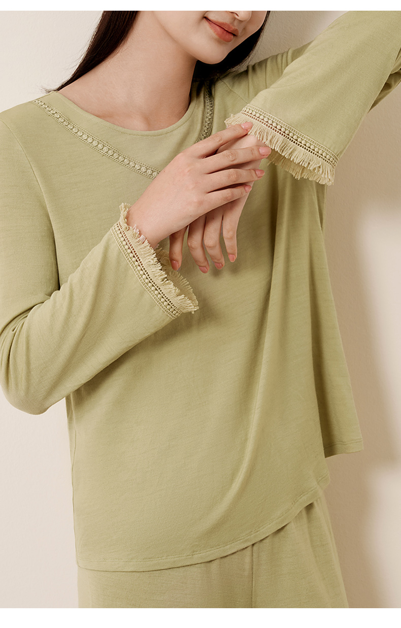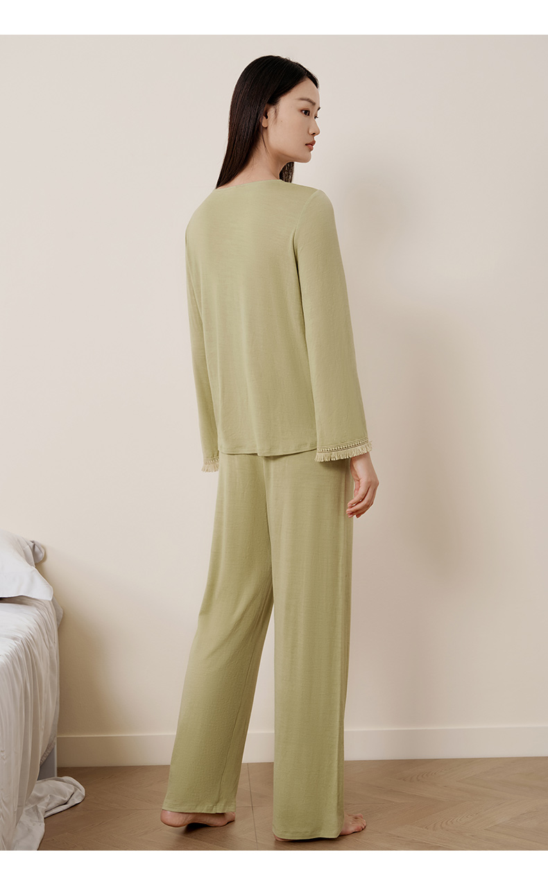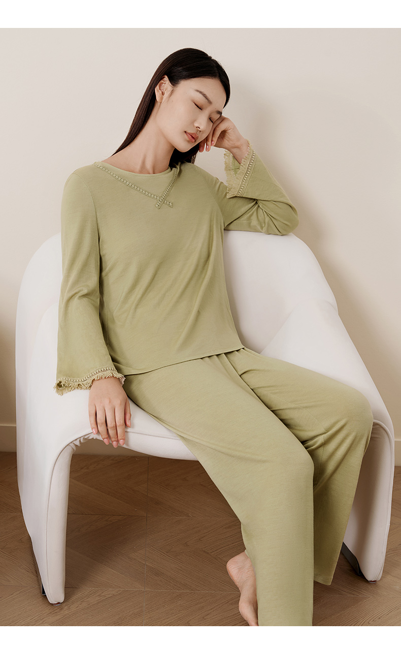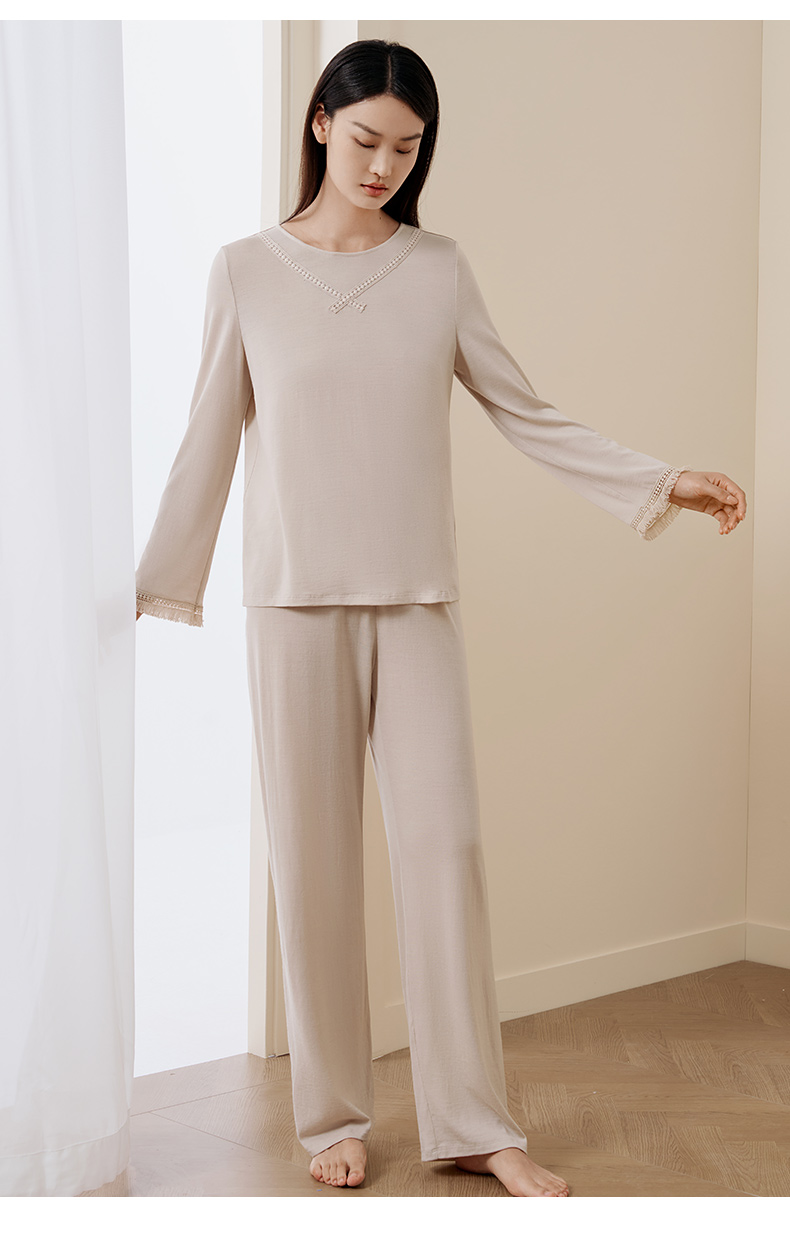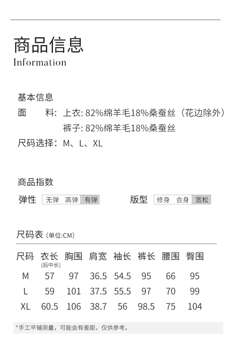 【深睡眠蚕丝睡衣】金三塔针织睡衣女桑蚕丝羊毛宽松家居服衣裤套 YZFFC201