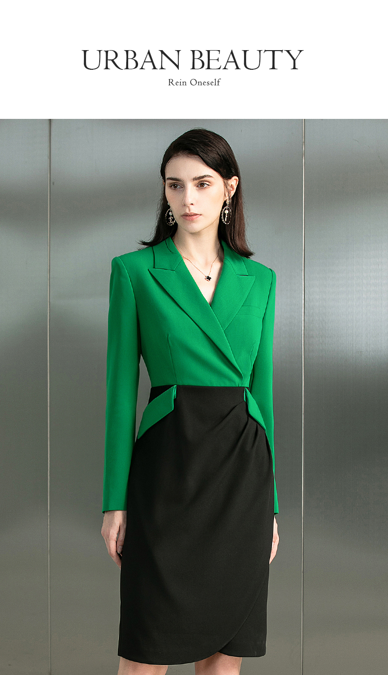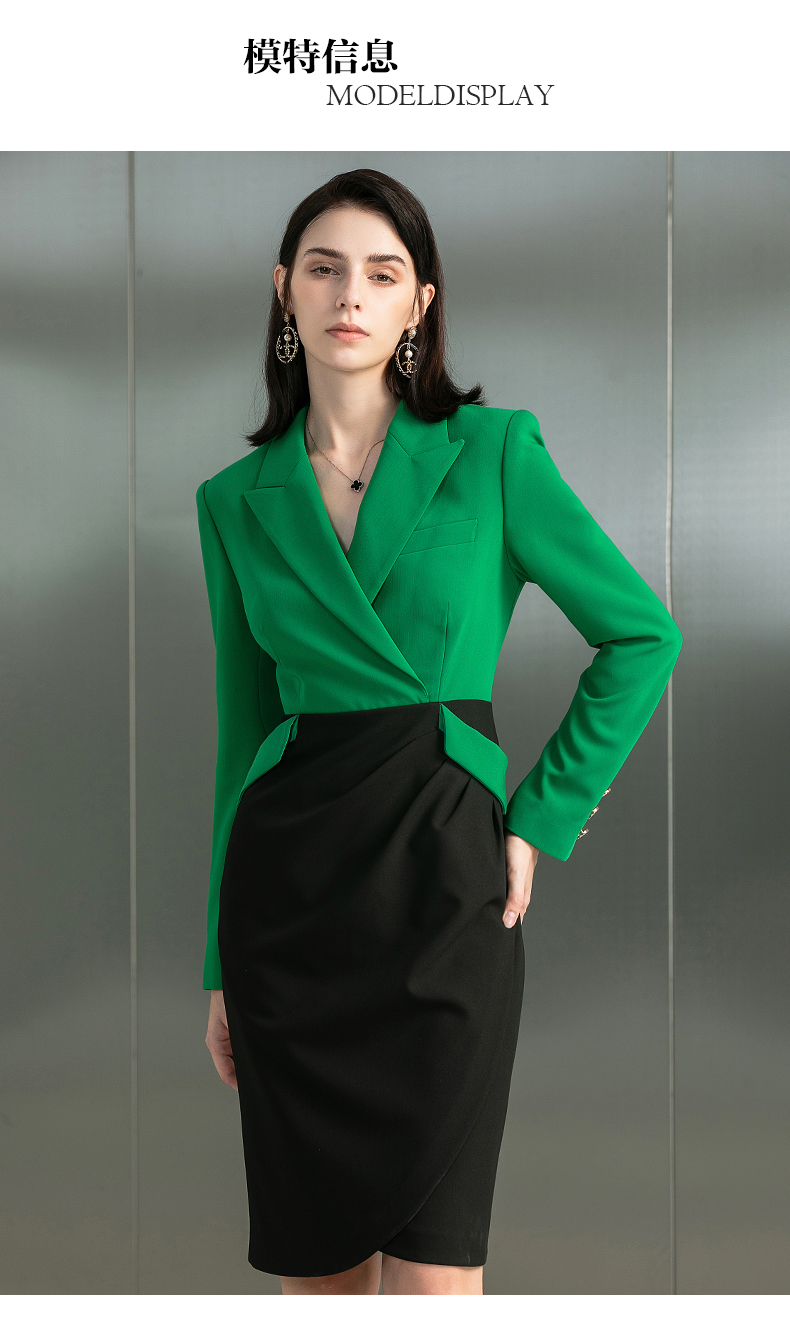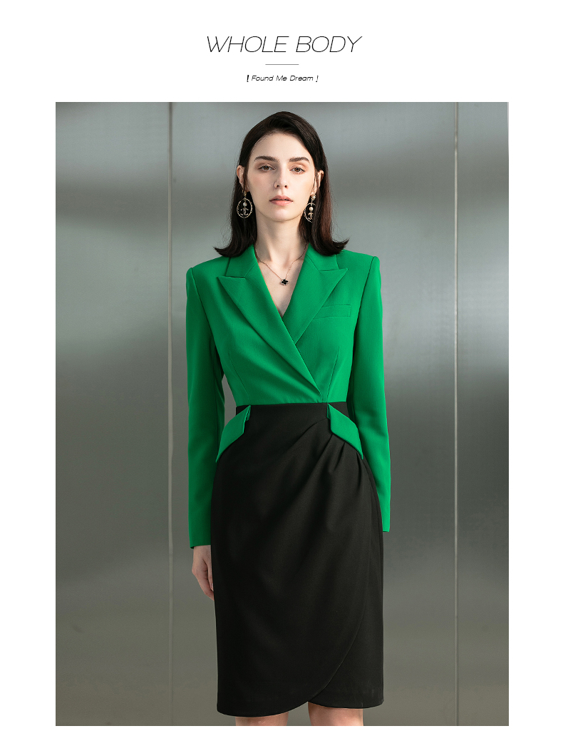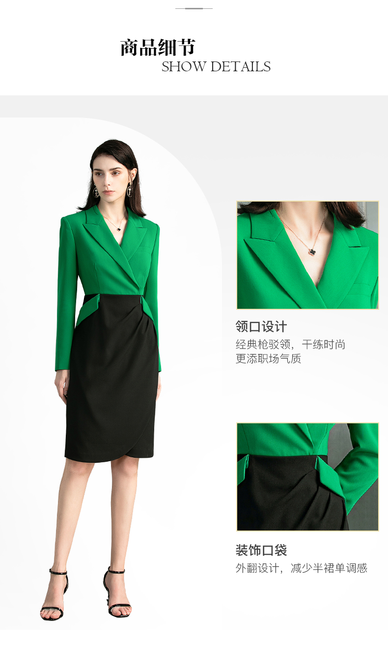 WQ/黑绿拼接高级感连衣裙223182Q1