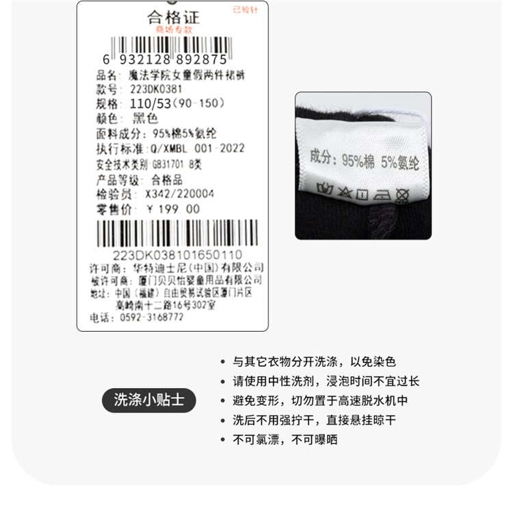 迪士尼魔法学院女童假两件裙裤223DK0381