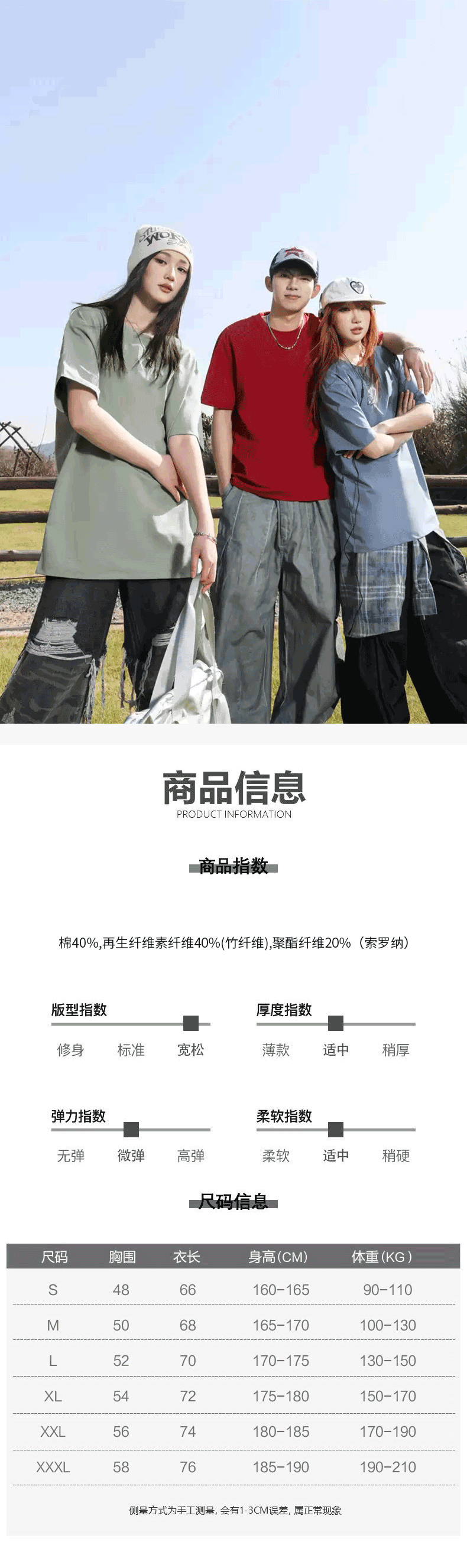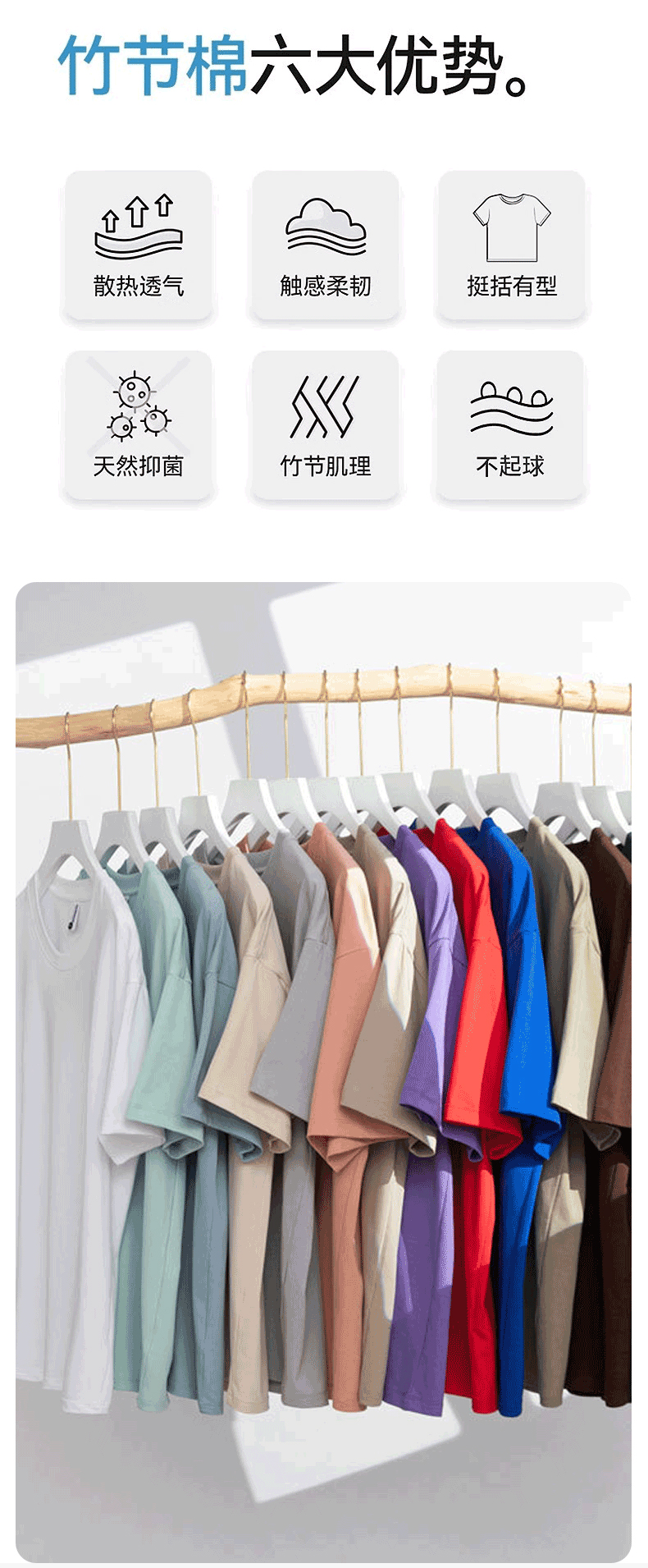 【99元3件,加购3件拍立减,单件不发货】240g竹节棉短袖,12色可选,新疆棉和竹纤维混纺,清凉会呼吸