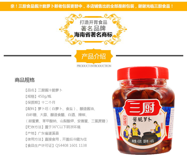 三厨 酱脆萝卜/泡椒萝卜(450g/900g)