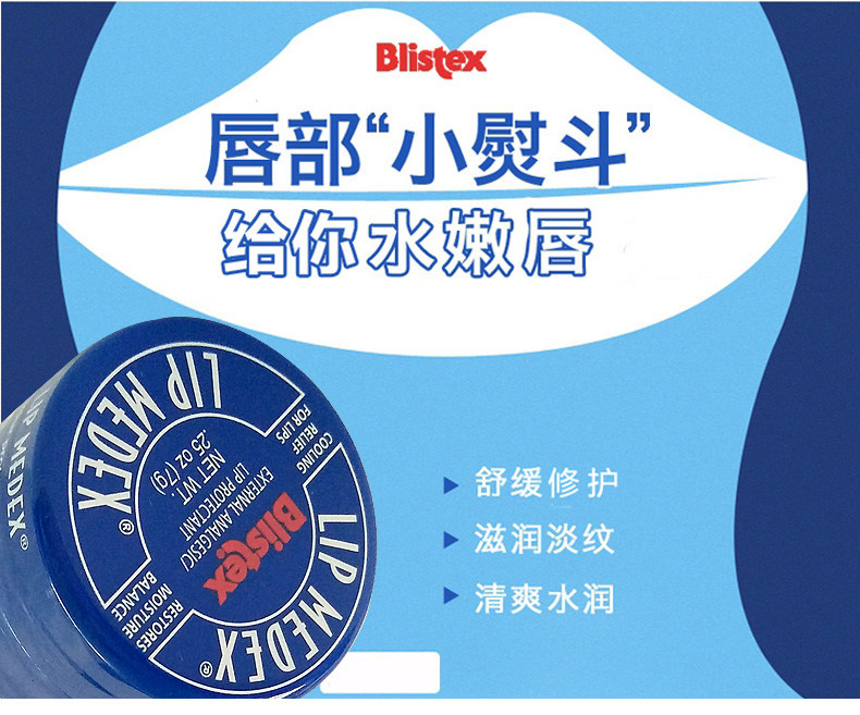 美国 Blistex碧唇小蓝罐润唇膏 补水滋润淡化唇纹防干裂