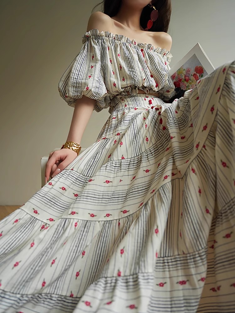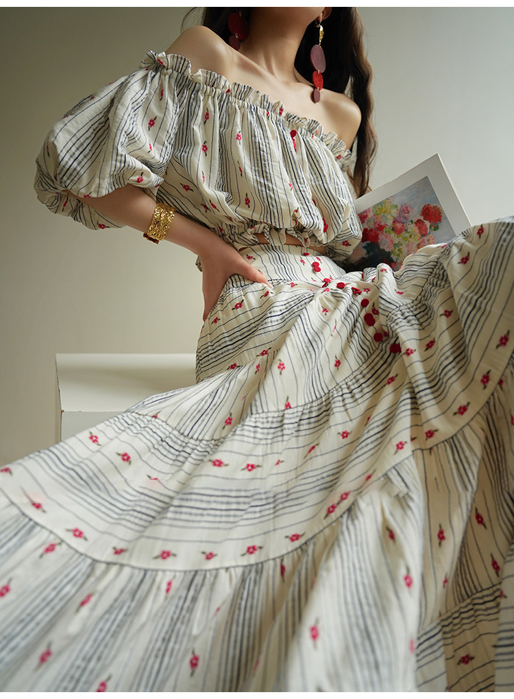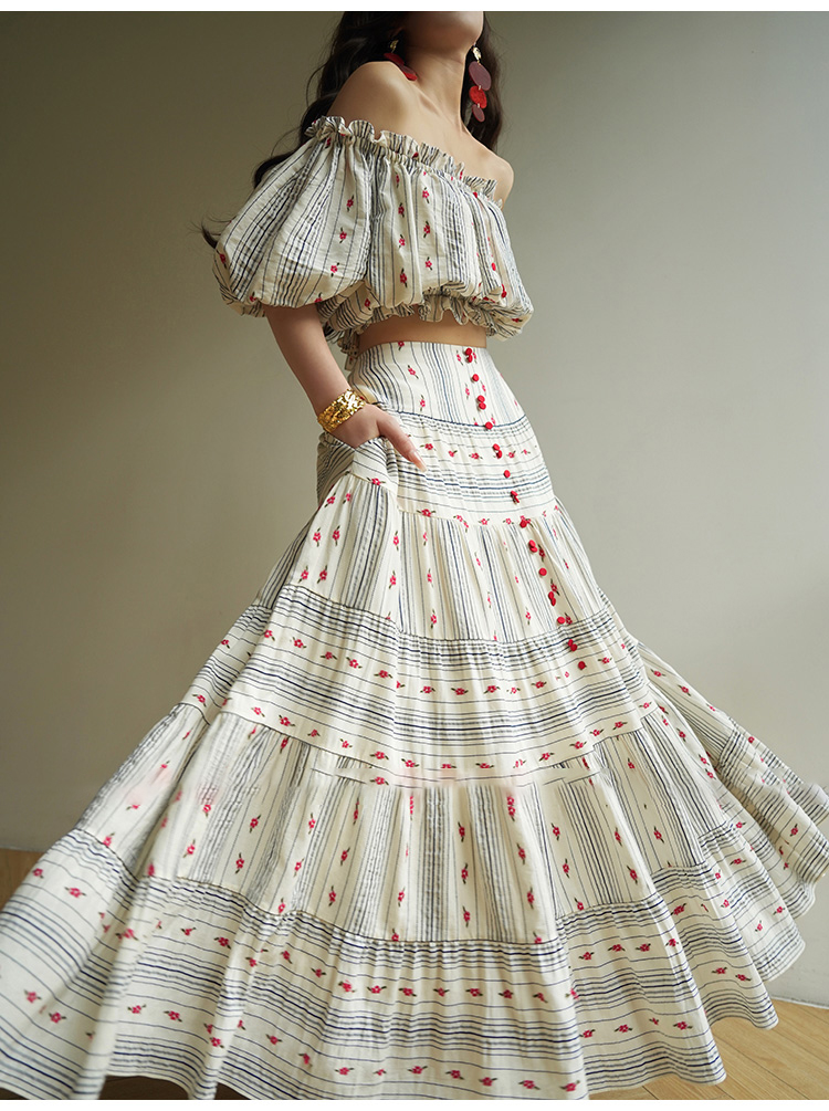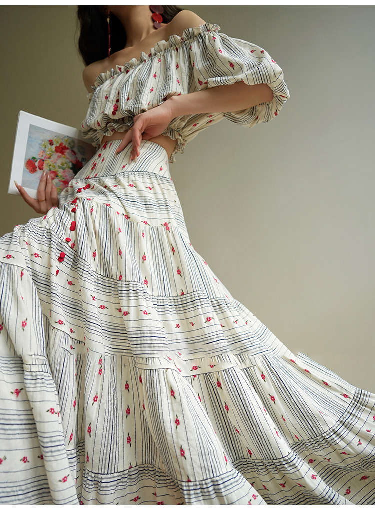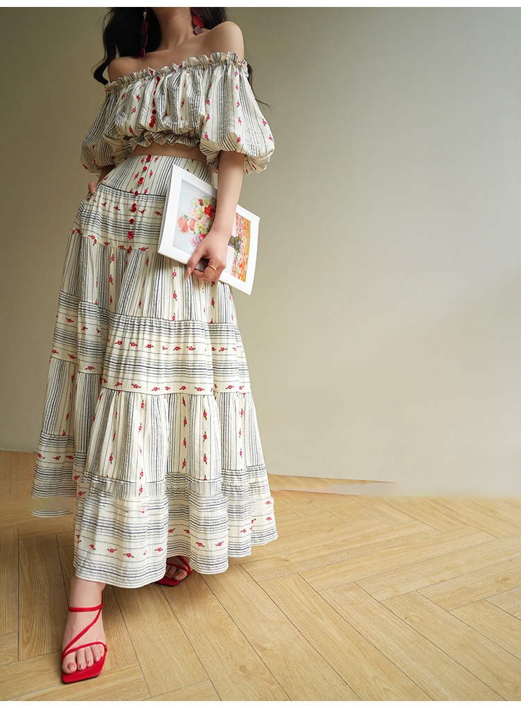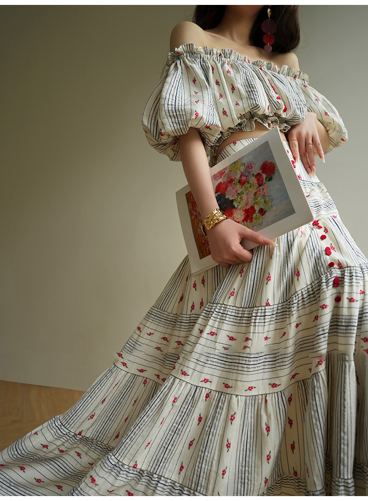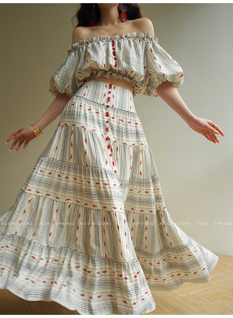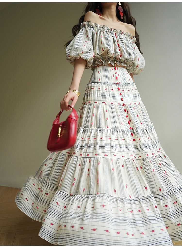 裁缝学苑AS521法式一字肩泡泡袖上衣高腰半身裙套装纸样裙子样板