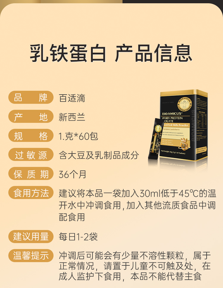 百适滴乳铁蛋白儿童婴幼儿调制乳粉宝宝婴儿新西兰进口高含量乳铁