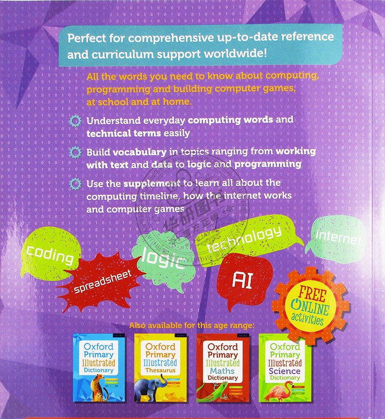This dictionary sits alongside the Oxford Primary Illustrated reference titles (the Primary Illustrated Dictionary, Thesaurus, Maths and Science titles), as well as supporting transition and lower secondary. It is also ideal for use with the International Primary Computing series for age 8+ and the Matrix Computing series for age 11+, and can be a key reference tool at school and at home.