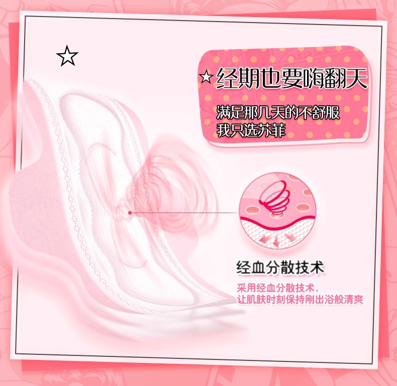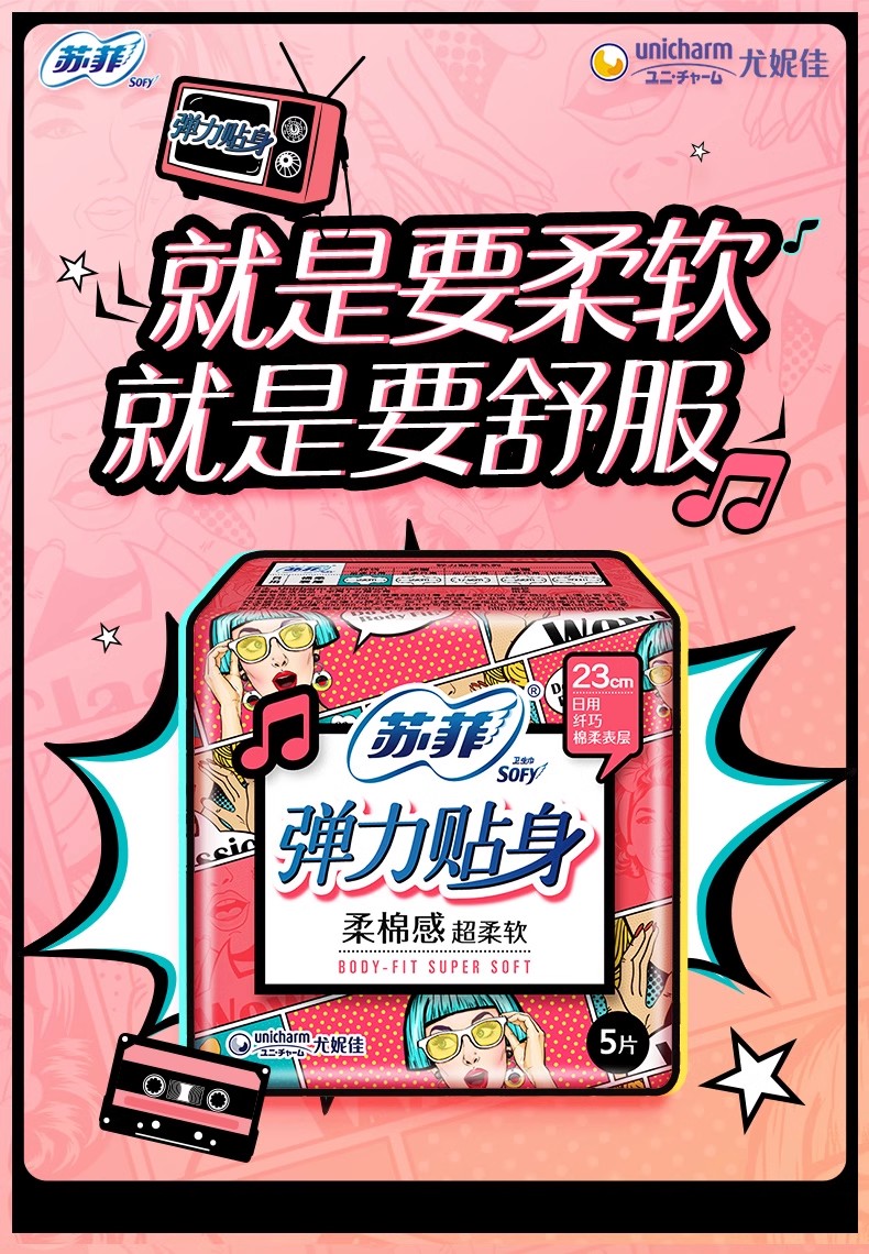 苏菲日用弹力贴身 230mm卫生巾姨妈巾棉柔表层包5片/包