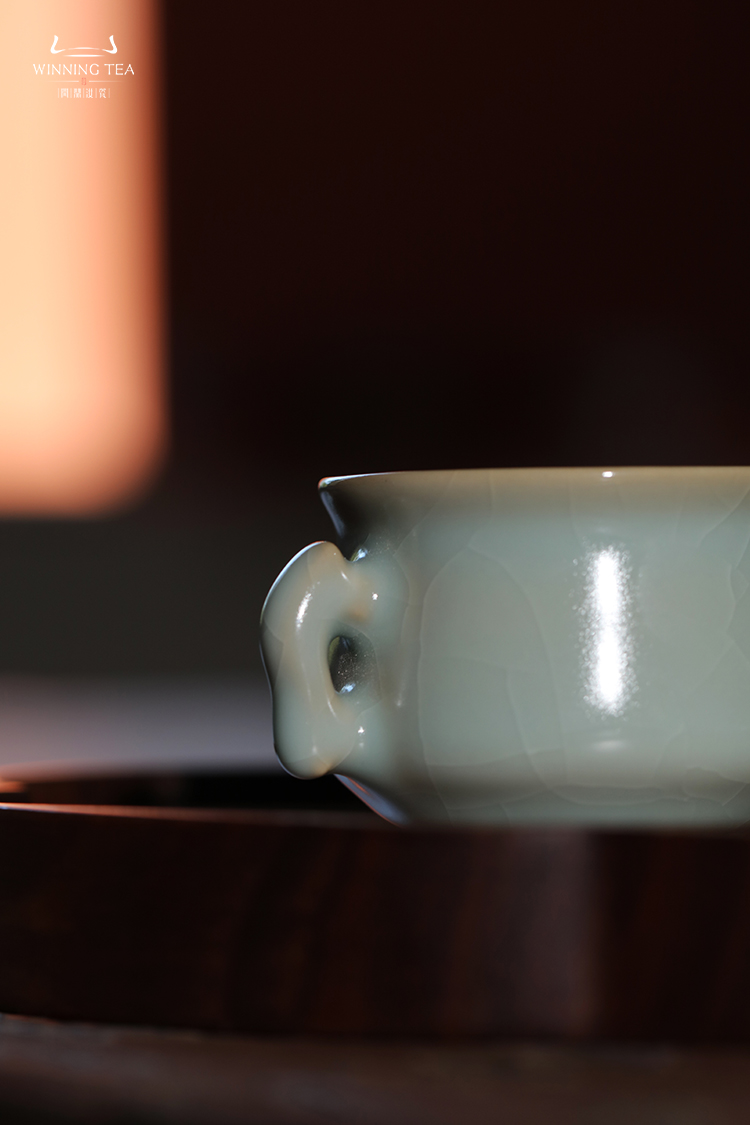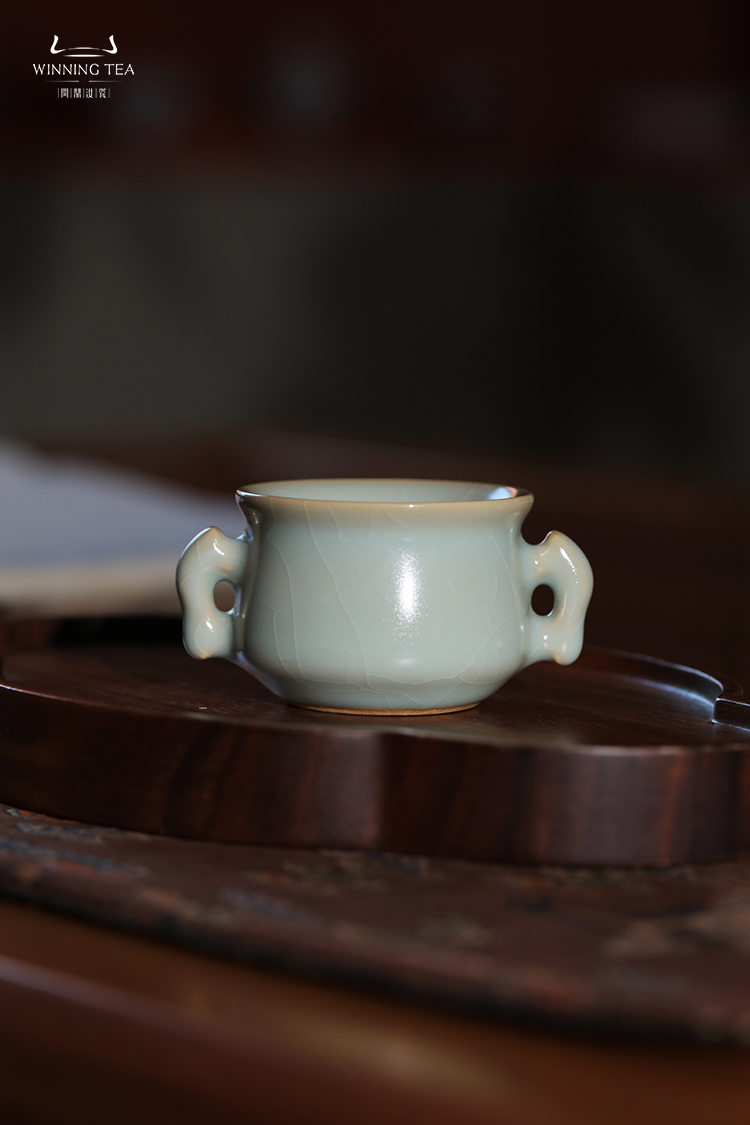 问鼎汝瓷收藏款天青鱼耳缸杯(双耳)