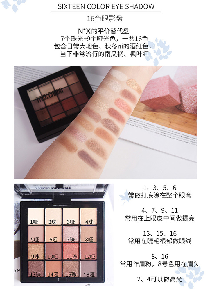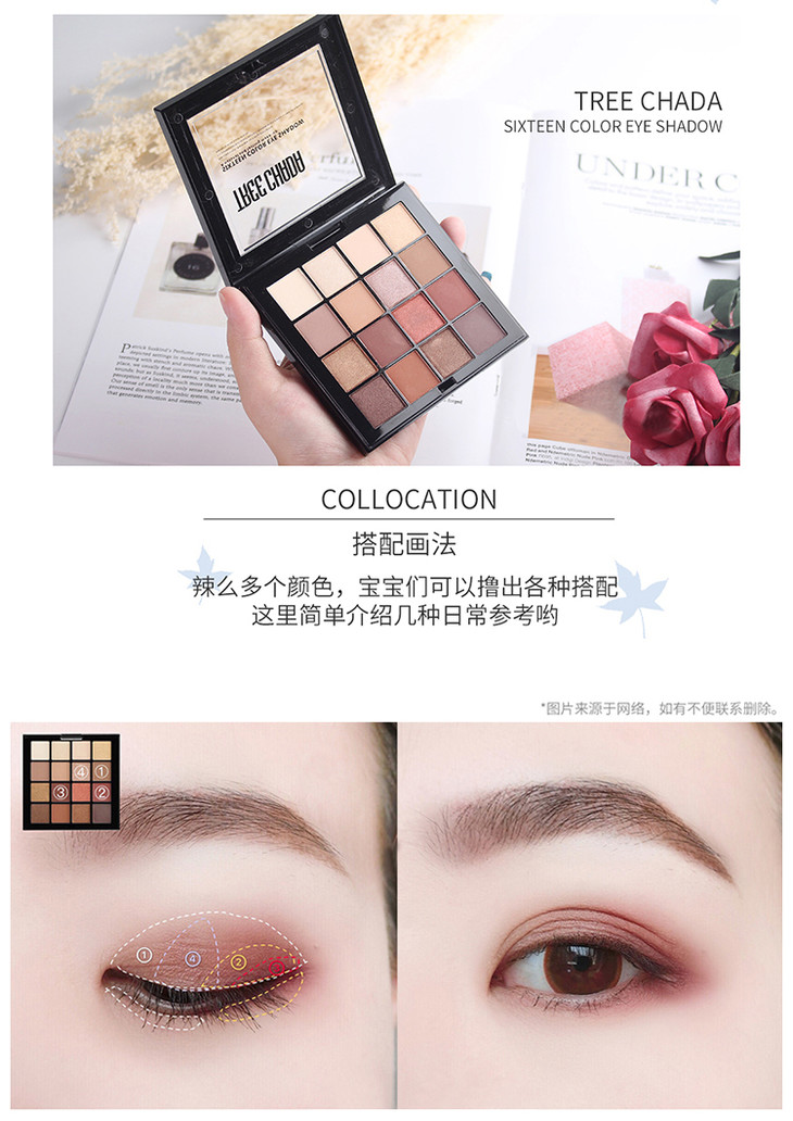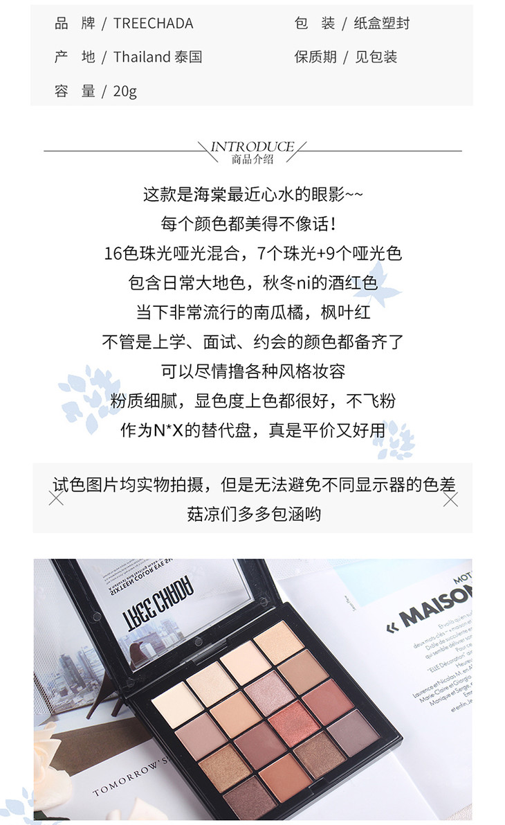 〖泰国〗进口TREECHADA网红眼影盘十六色大地色裸色哑光珠光懒人初学者