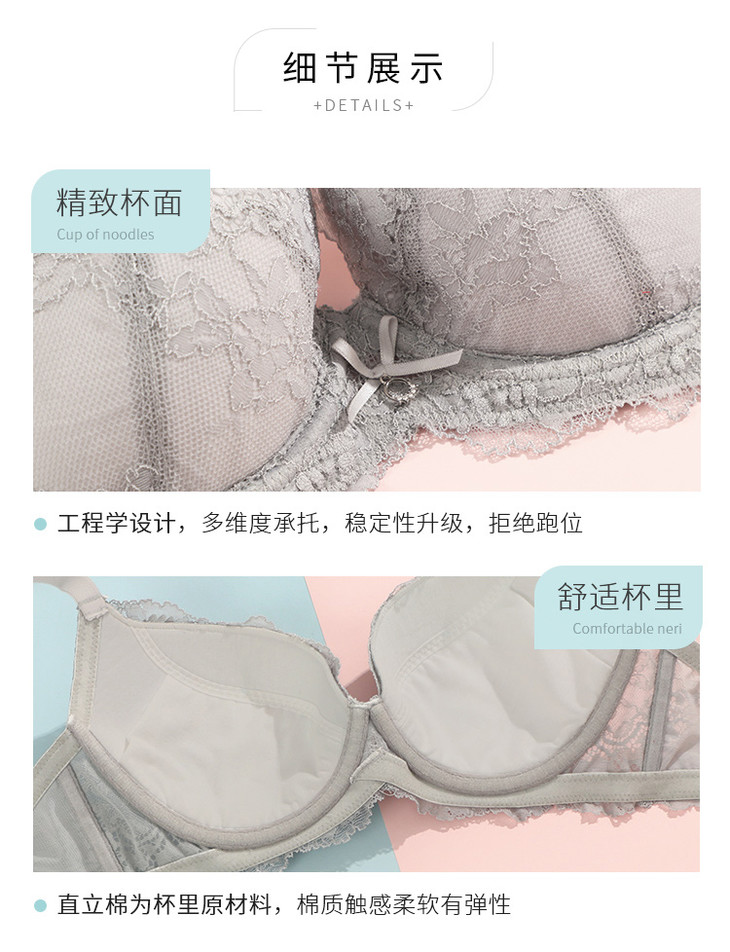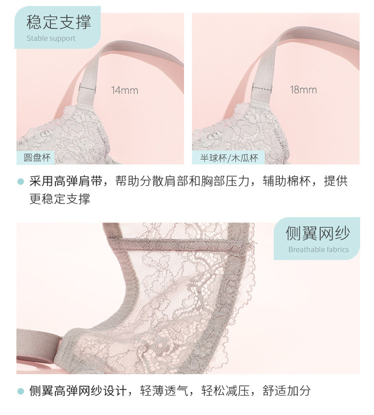 奶糖派告白2 小清新大罩杯经典搭配粉色蕾丝文胸迷雾灰