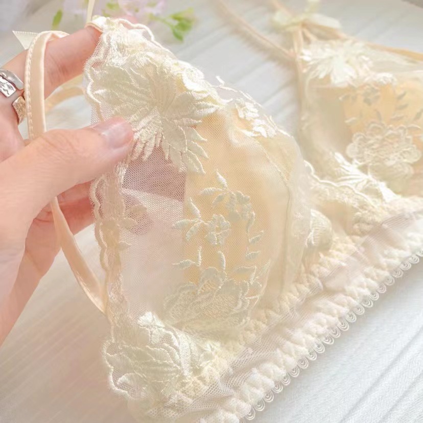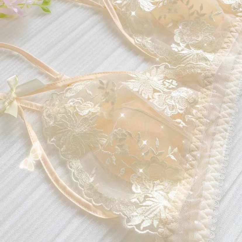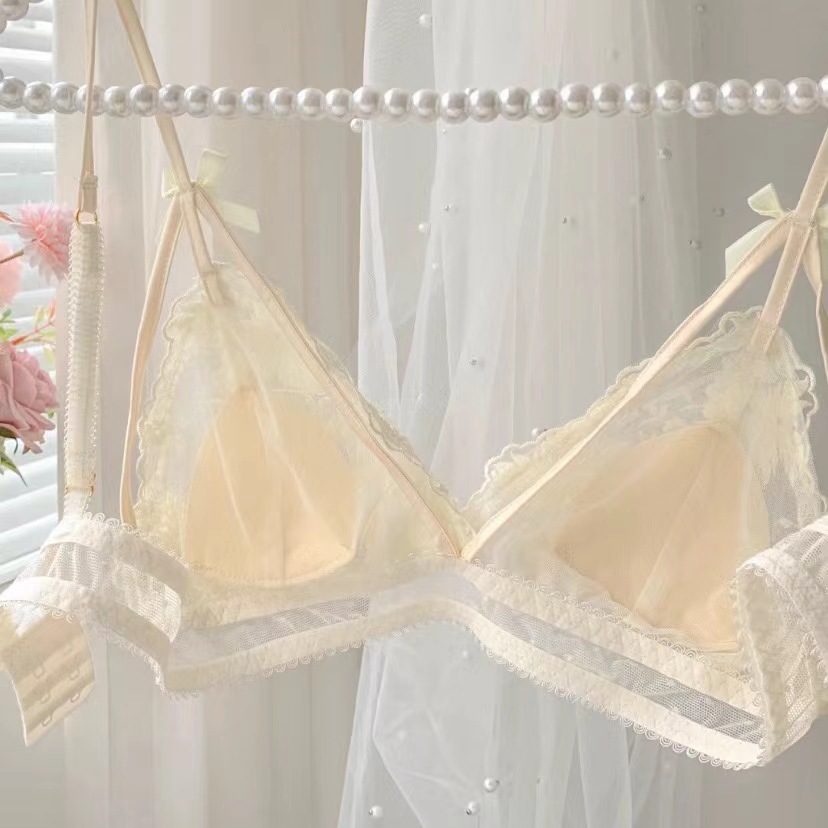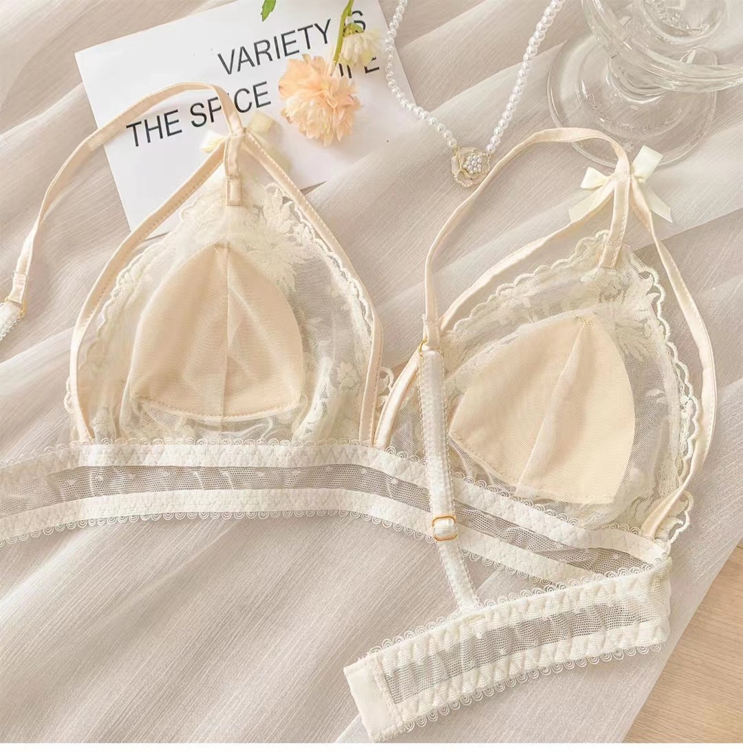 【89.9任选2套❗️法式内衣裤套装】夏季法式三角杯内衣,超薄款聚拢上托小胸,调整型美背无钢圈文胸,前扣聚拢不空杯无钢圈内衣女L