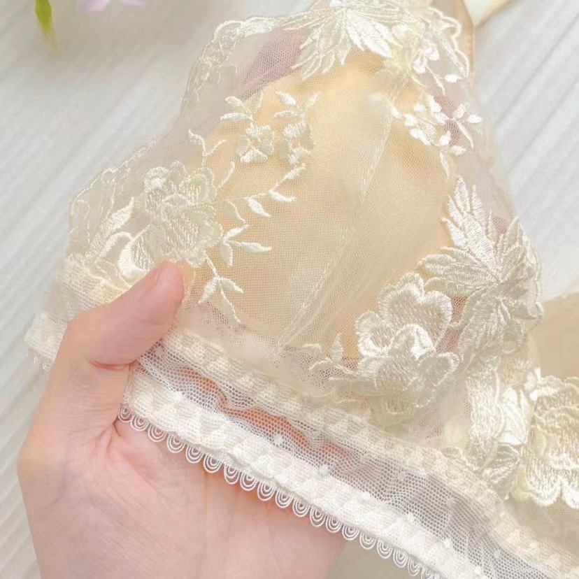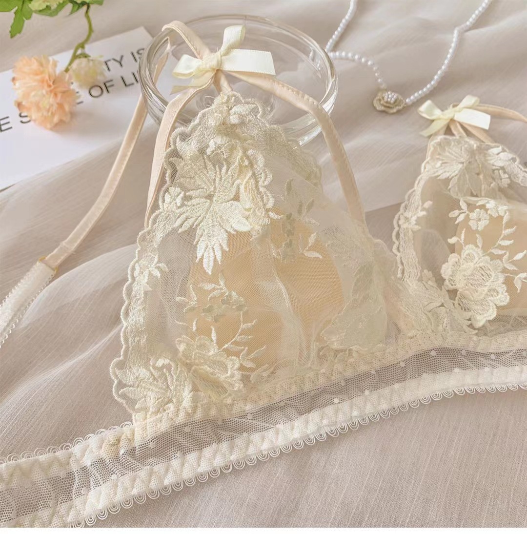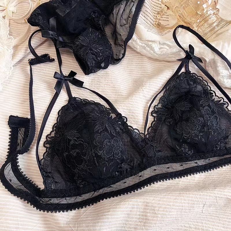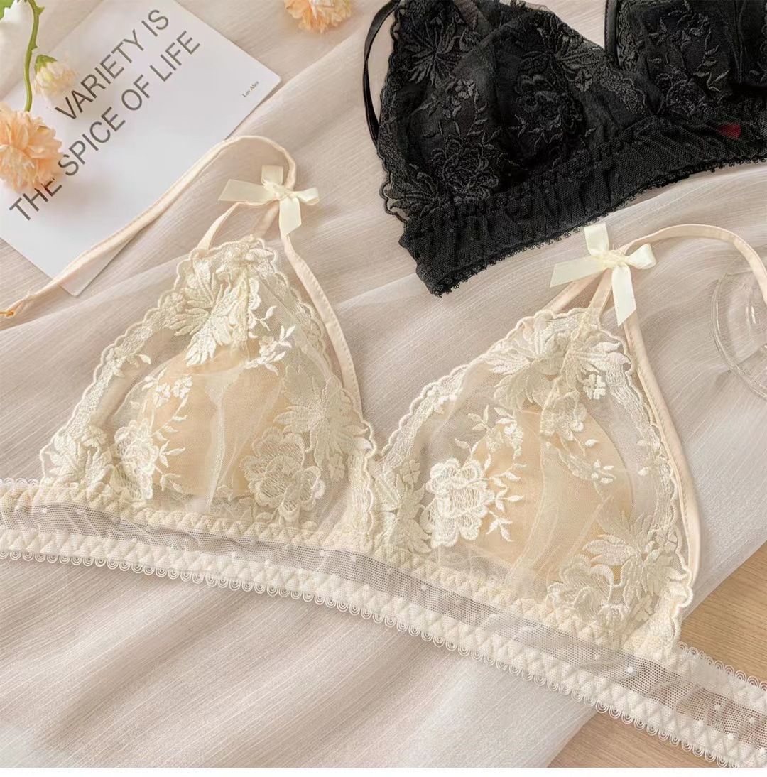 【89.9任选2套❗️法式内衣裤套装】夏季法式三角杯内衣,超薄款聚拢上托小胸,调整型美背无钢圈文胸,前扣聚拢不空杯无钢圈内衣女L