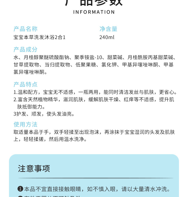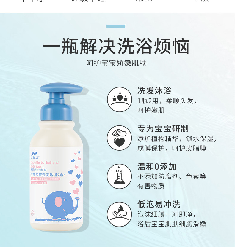 【儿童沐浴露】美源坊宝宝沐浴露洗发水2合1 婴幼儿润肤洗护用品儿童洗沐二合一