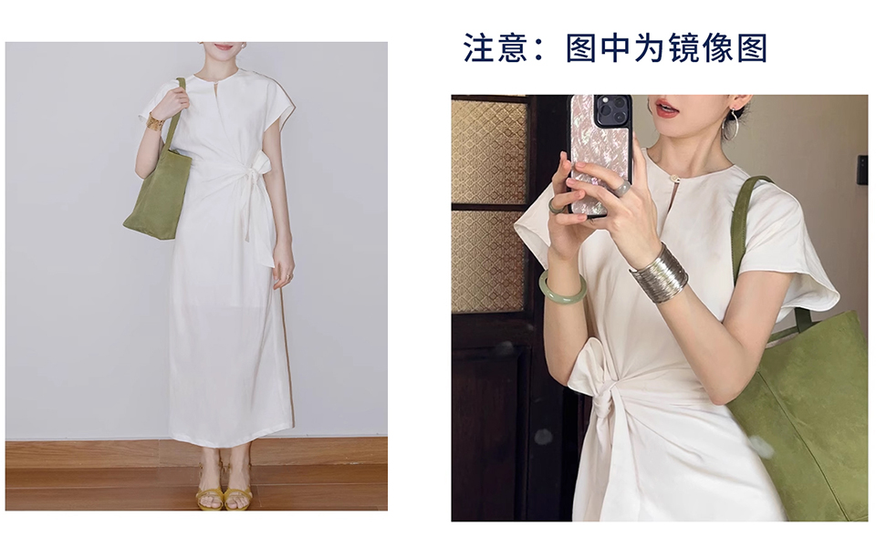 裁缝学苑AS290 连肩半开袖扭结系带收腰连衣裙纸样女装裙子服装打板图