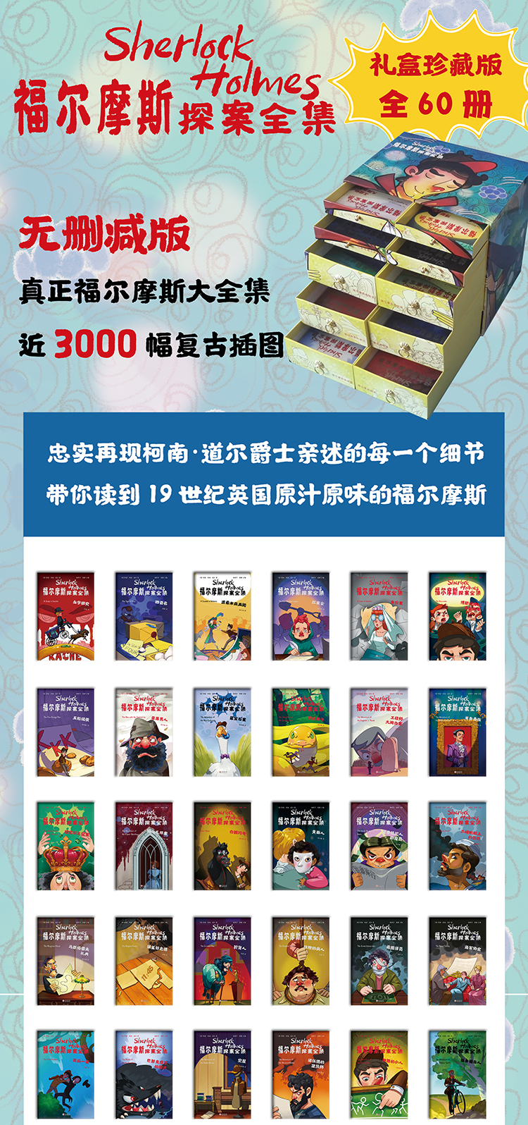 《福尔摩斯探案全集》全60册 无删减,精美礼盒装 珍藏版 (含盲盒)| 3000张插图还原现场,让孩子身临其境,名家翻译,易读易懂!