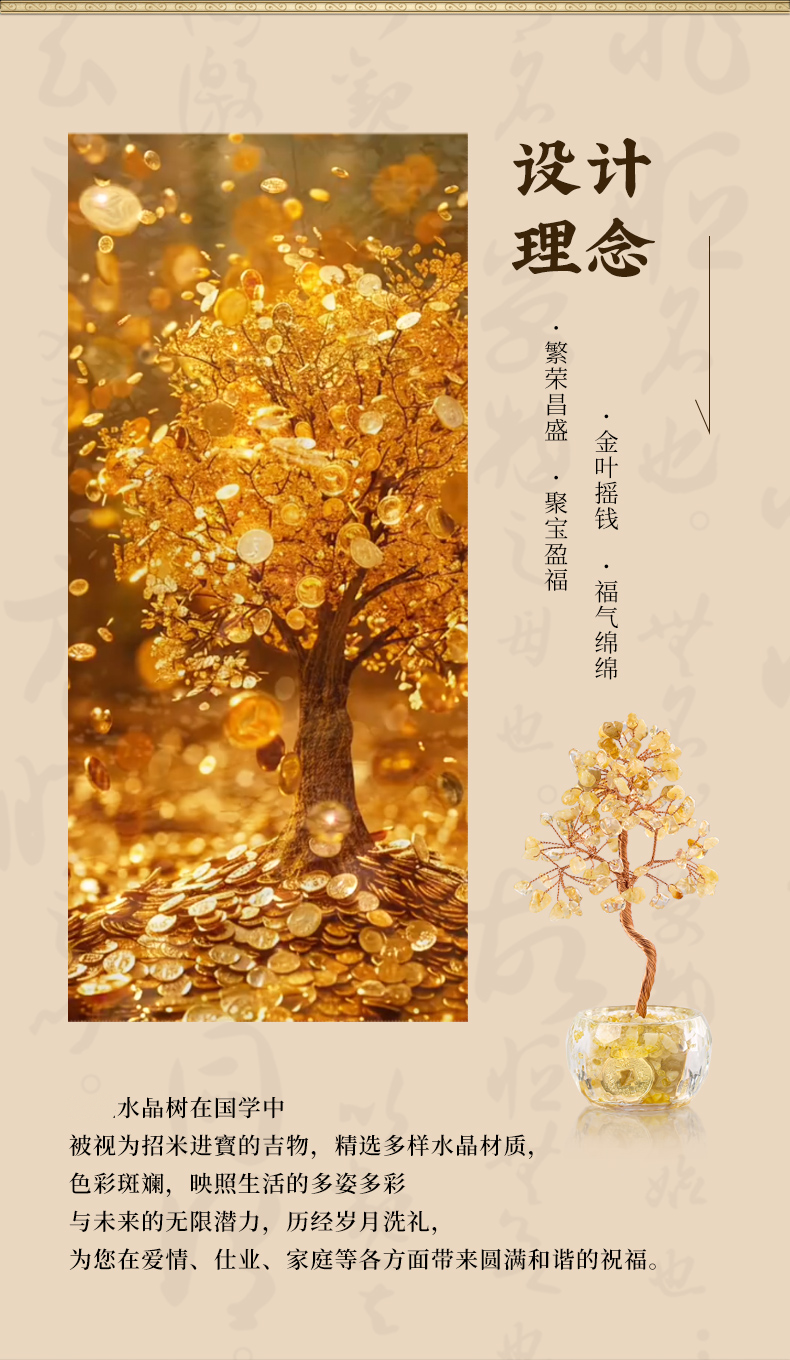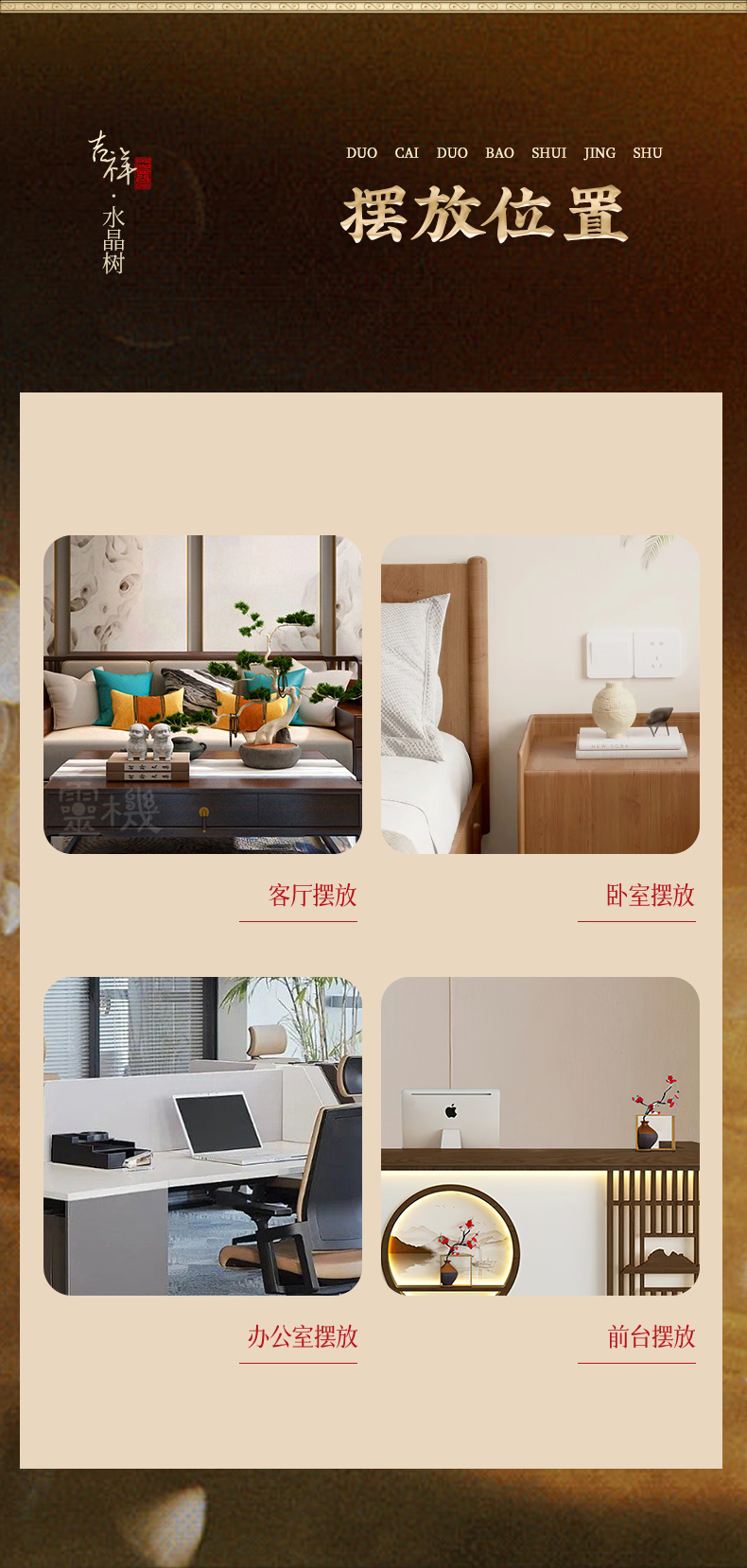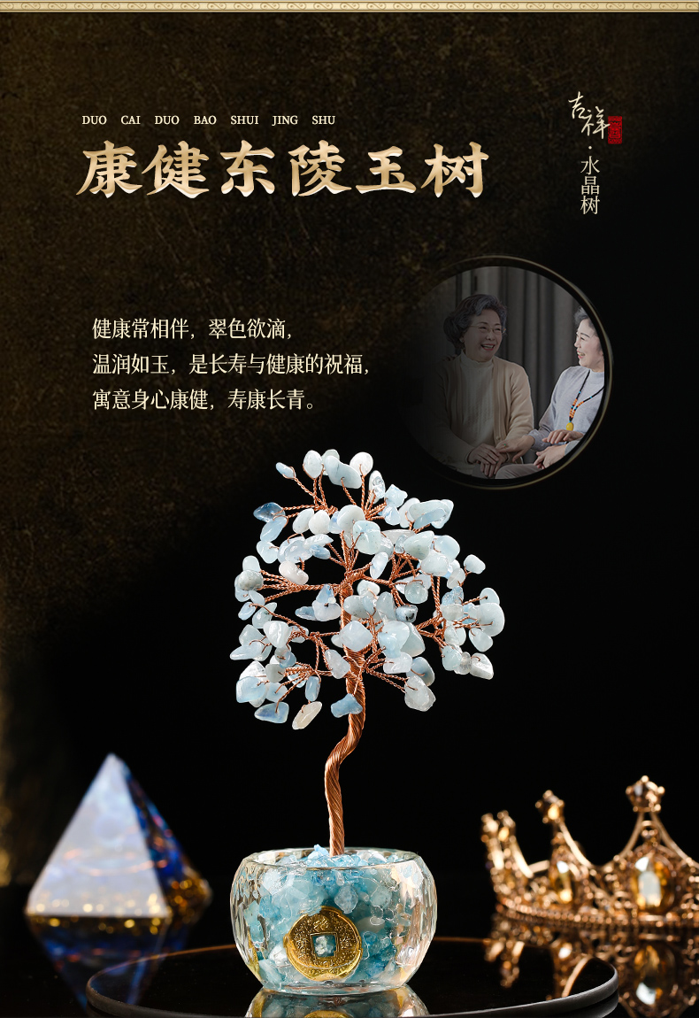 【灵机吉品多彩多寳五福水晶树吉祥水晶家居办公室前台摆件装饰品