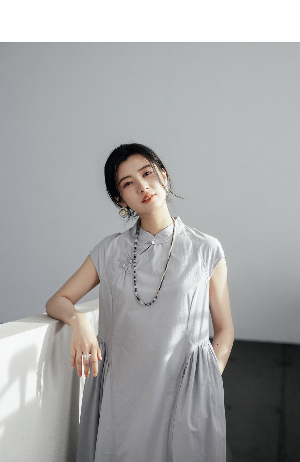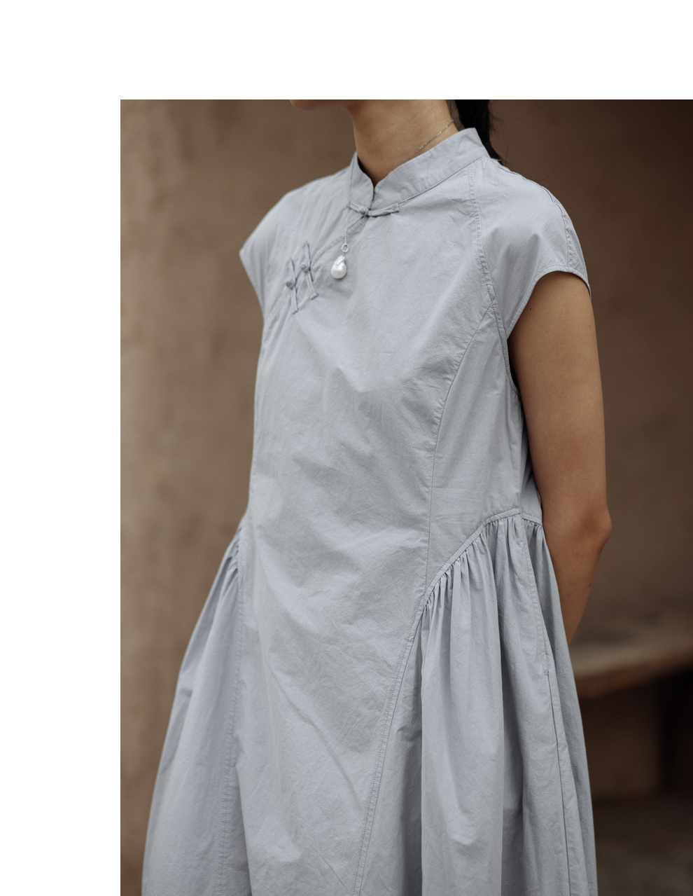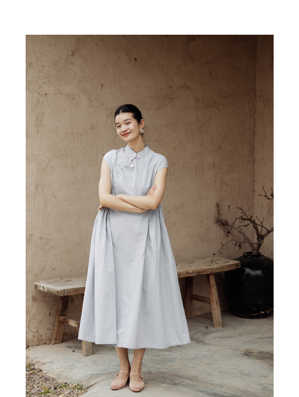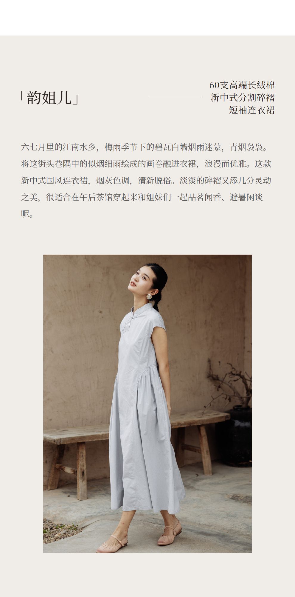 绽放478朵【黑白灰系列·韵姐儿】长绒棉新中式分割短袖连衣裙