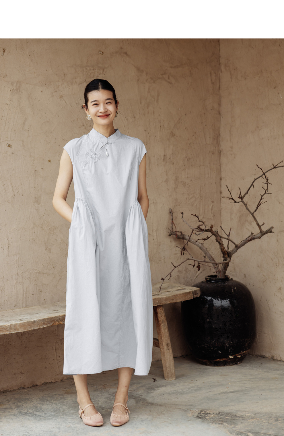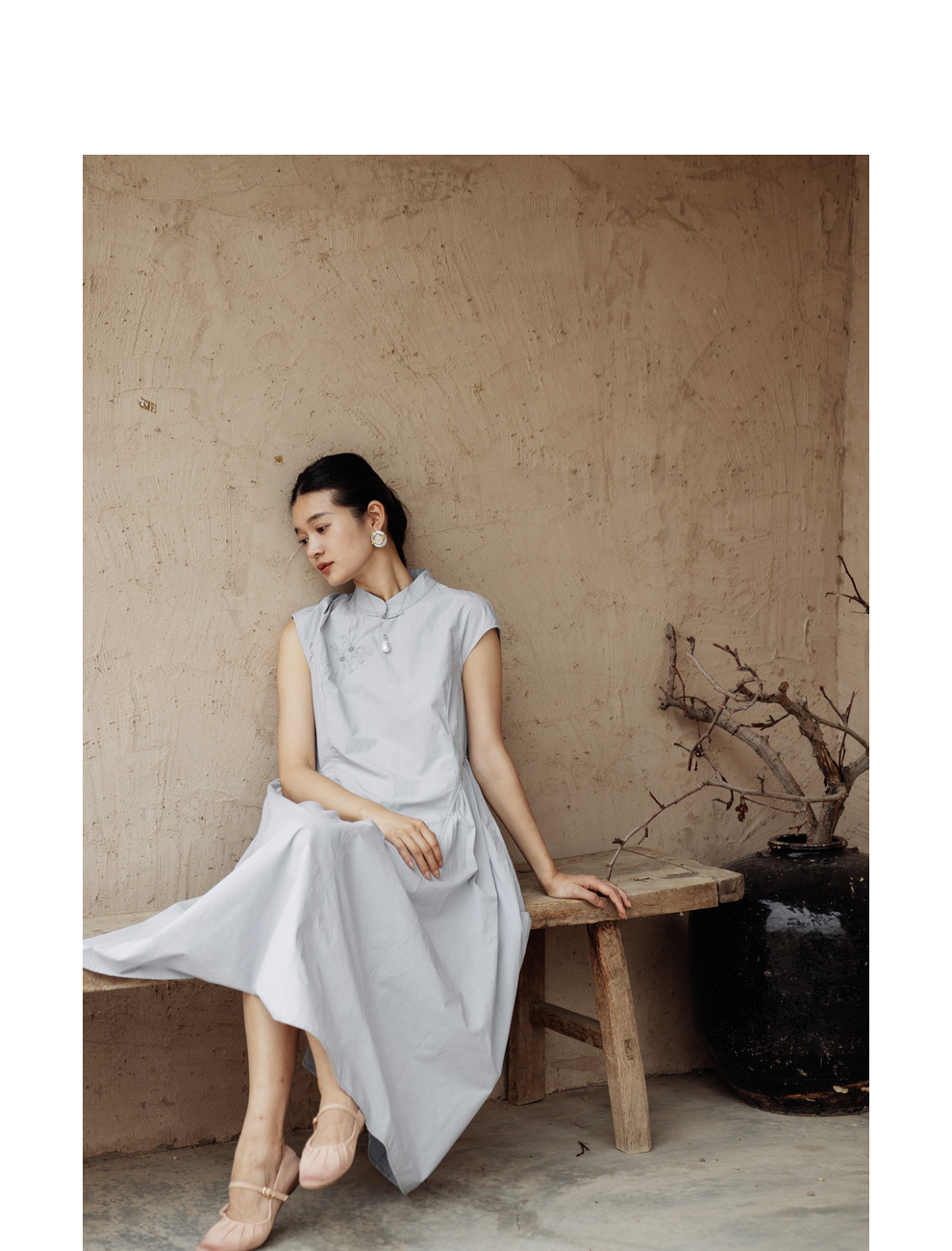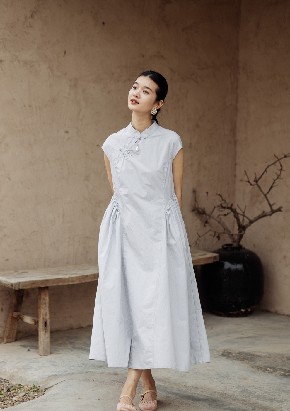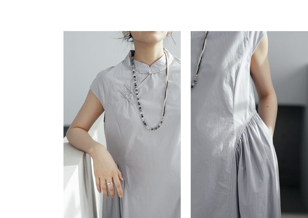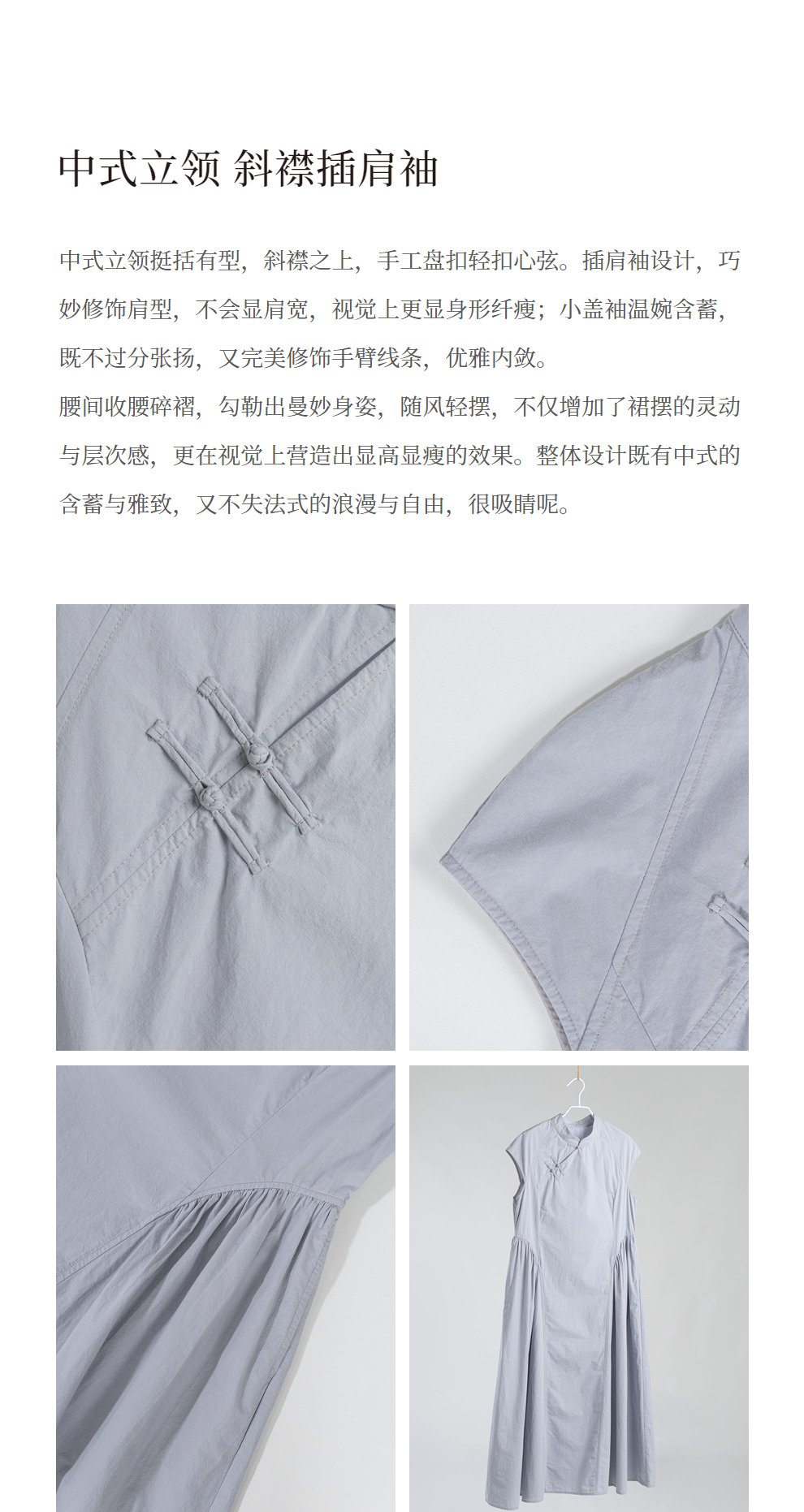 绽放478朵【黑白灰系列·韵姐儿】长绒棉新中式分割短袖连衣裙