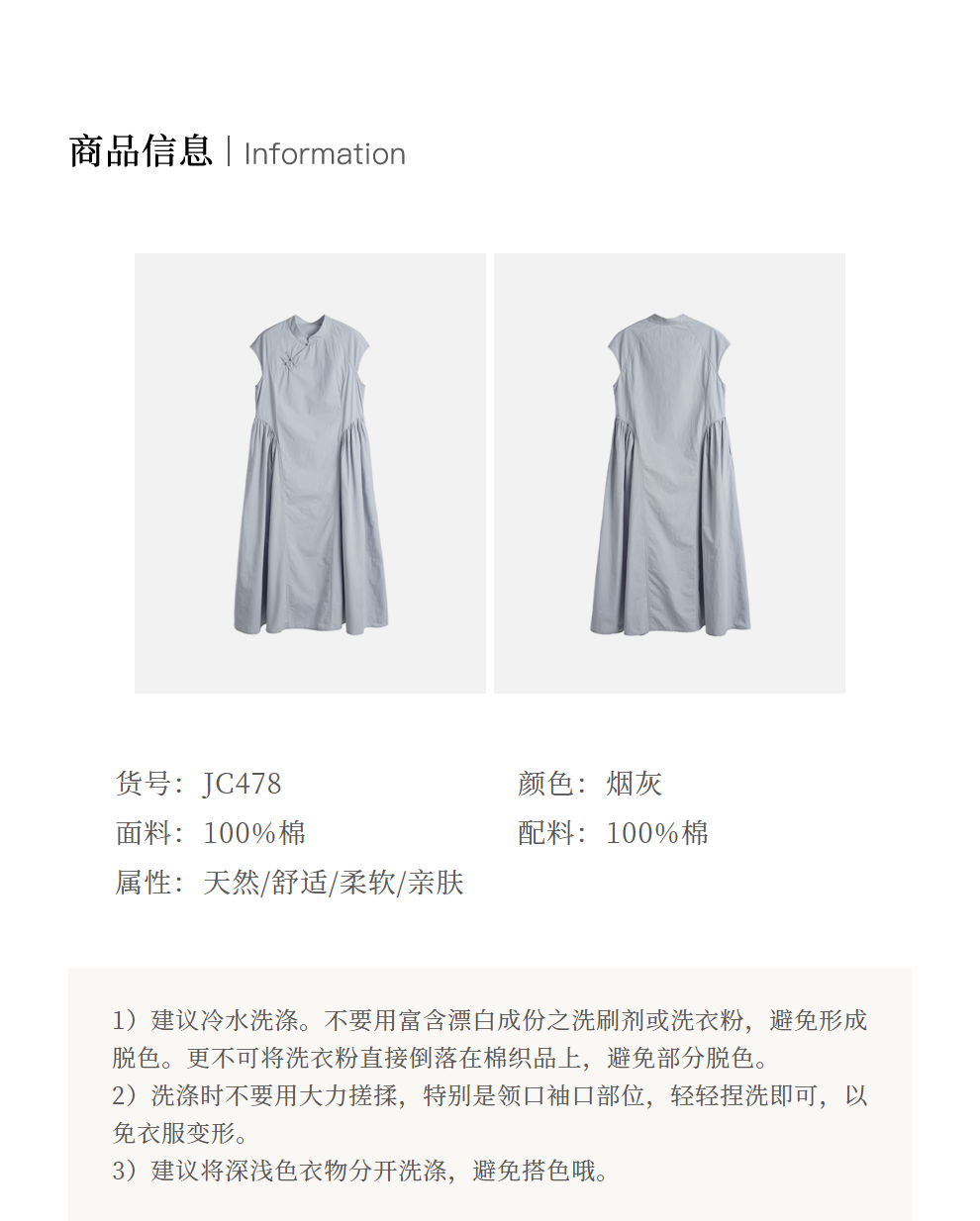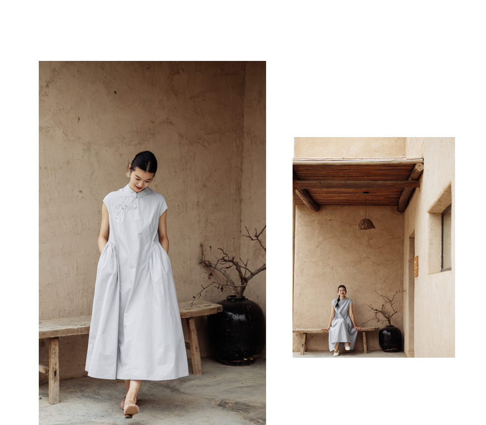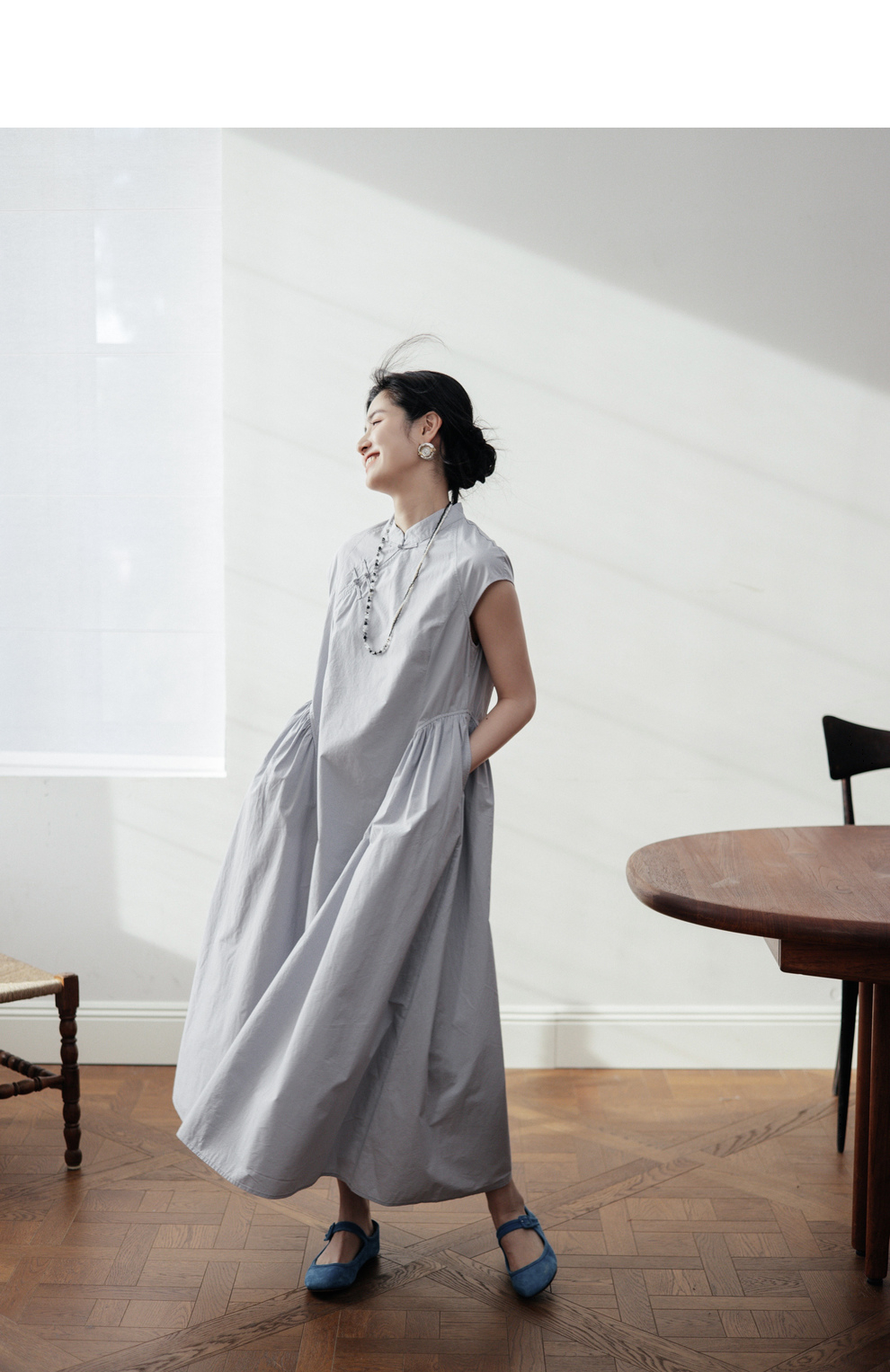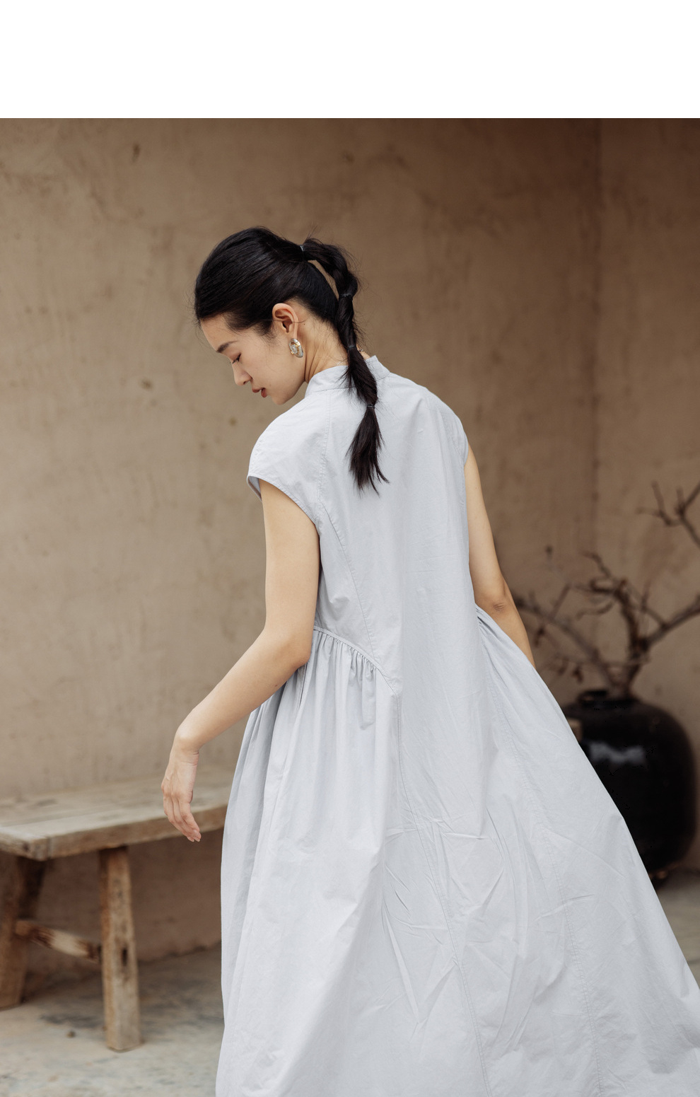 绽放478朵【黑白灰系列·韵姐儿】长绒棉新中式分割短袖连衣裙