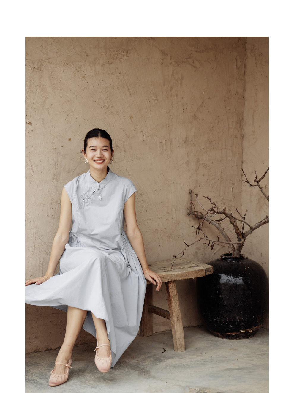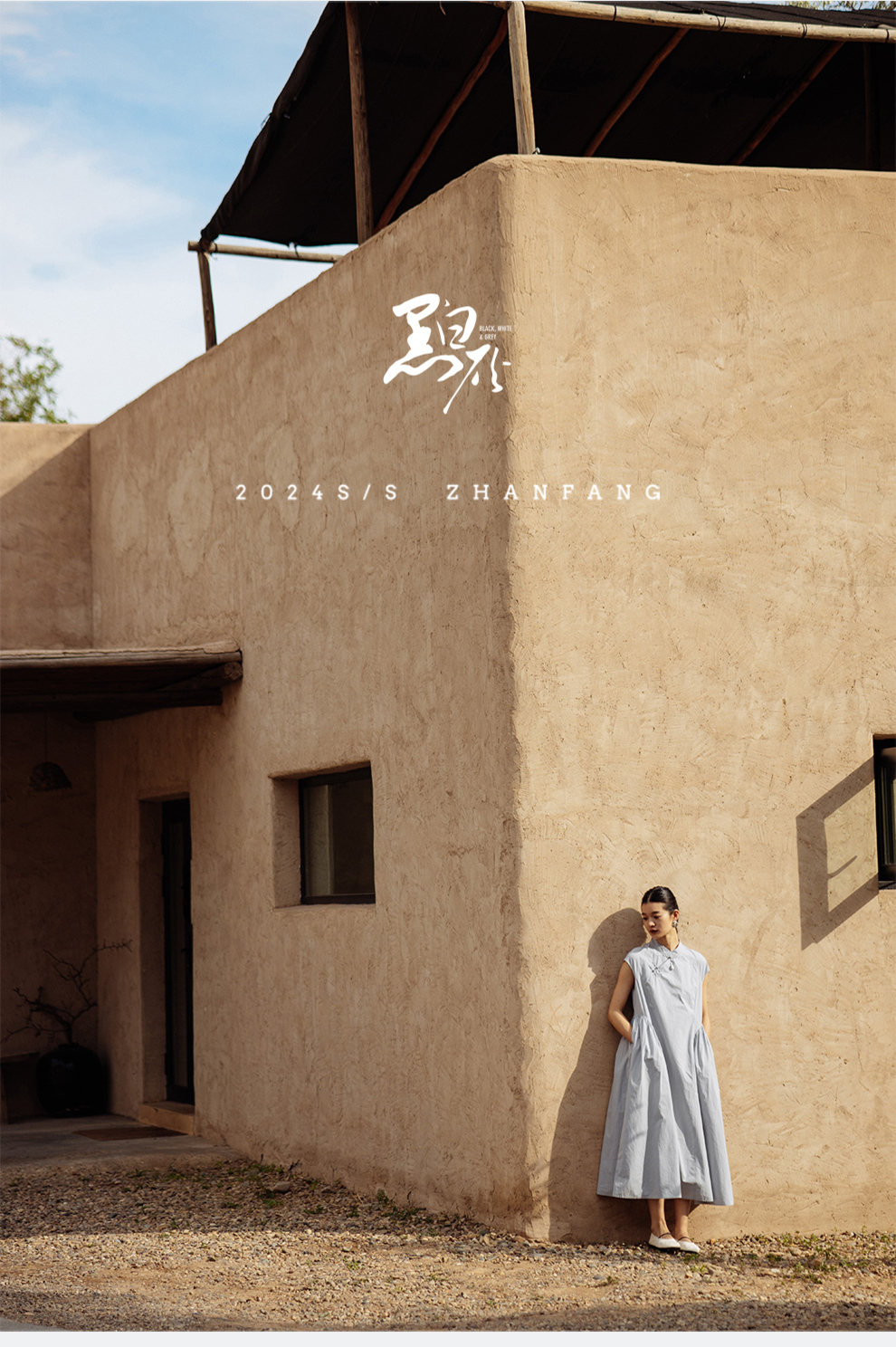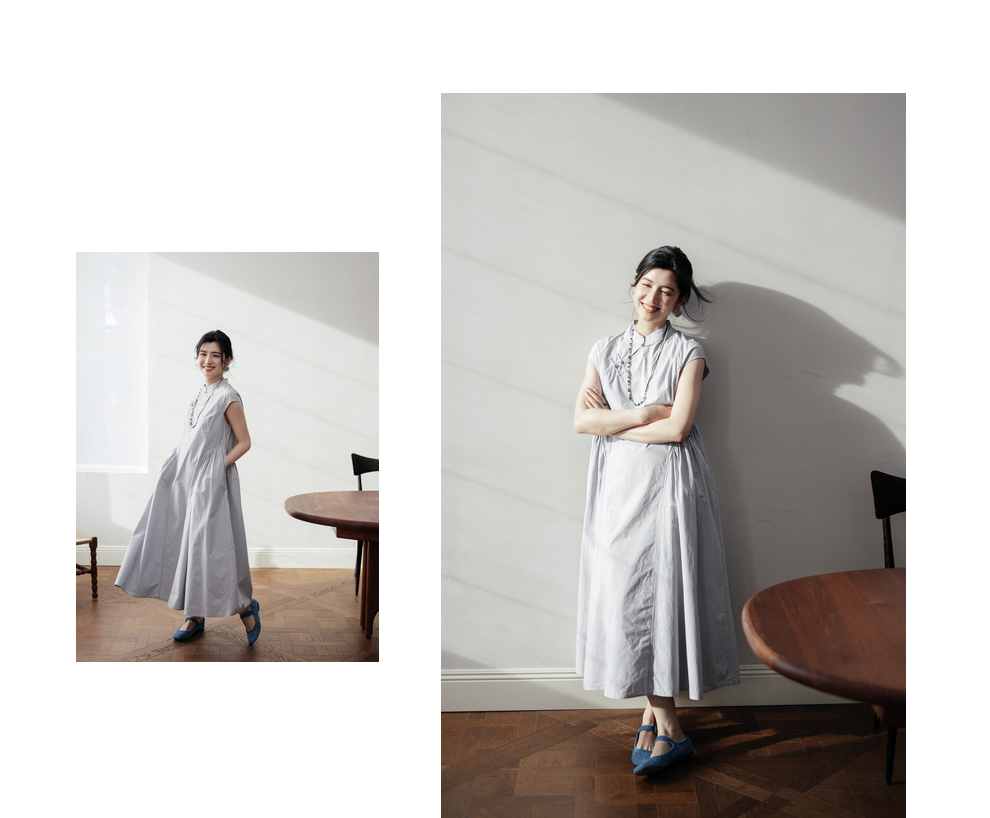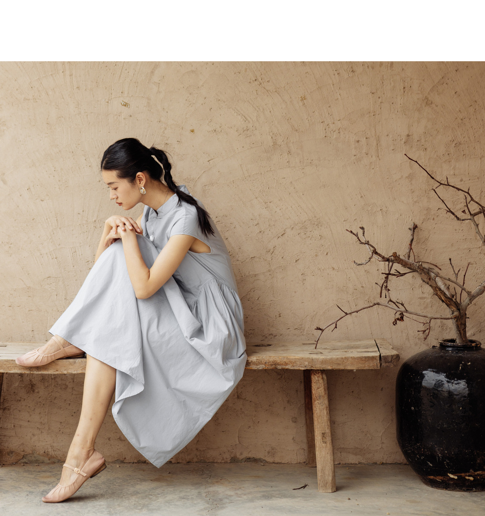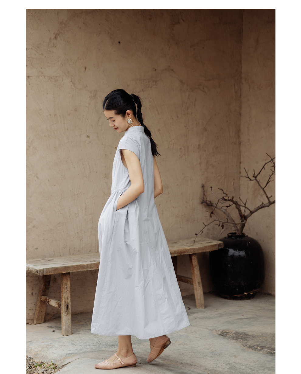 绽放478朵【黑白灰系列·韵姐儿】长绒棉新中式分割短袖连衣裙