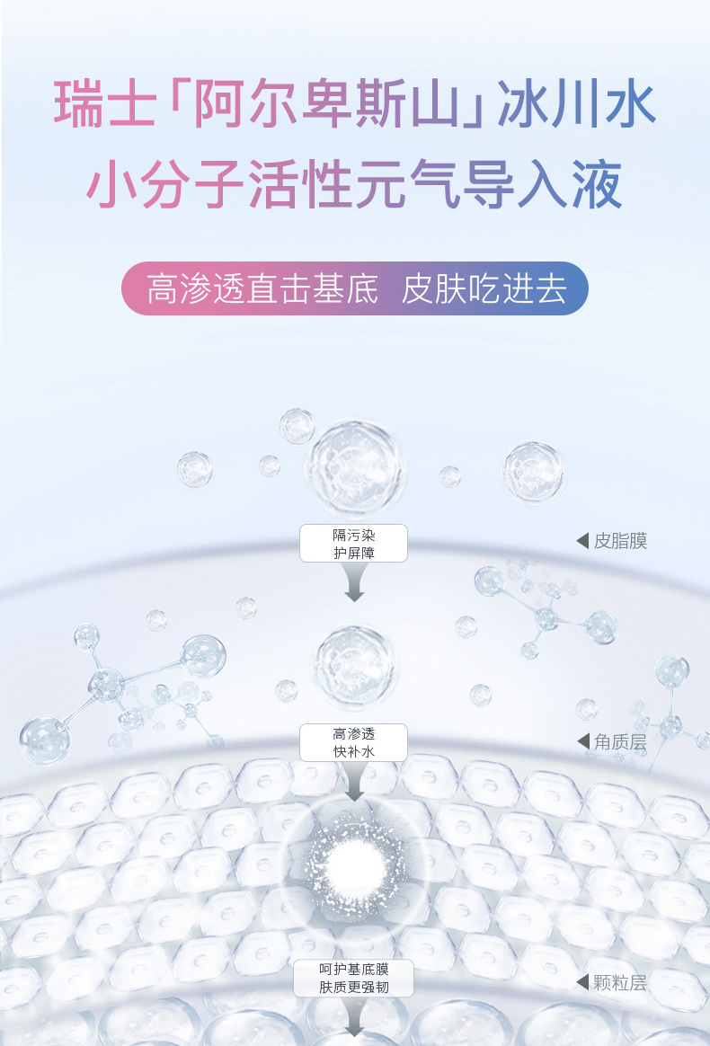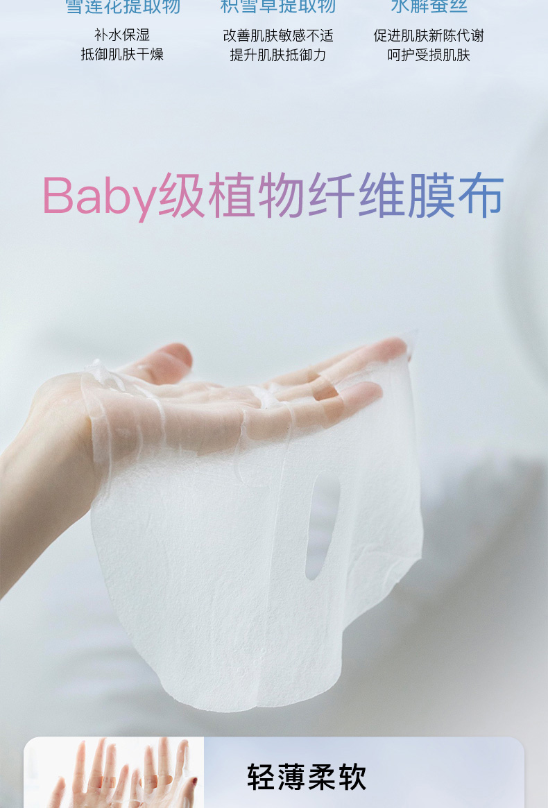 还添加了阿尔比斯山冰川水,使用了“铂金面膜”,自带抗氧化能力的膜布,提亮肤色,熬夜肌必备膜布。
