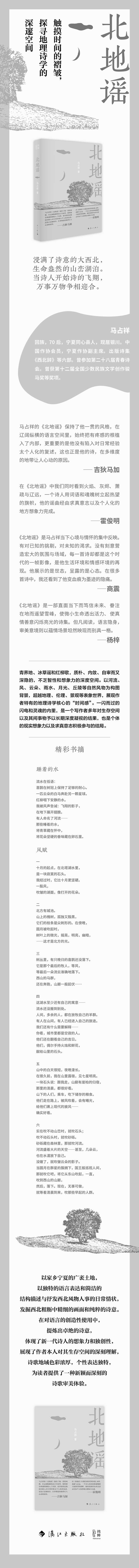 《北地谣》收录诗人、宁夏作协副主席马占祥2022至2024年新创作的诗歌170余首。作者立足家乡宁夏的广袤土地,以独特的语言表达和简洁的结构描述与抒发西北风物人事的日常情状,发现西北粗粝中精细的画面和纯粹的诗意,在对语言的创造性使用中,提炼出卓绝的诗意,体现了新一代诗人的想象力和独创性,展现了作者本人对其生存空间的深刻理解,也为读者提供了一种新颖的诗歌审美体验。诗歌地域色彩浓厚,个性表达独特,读者体验丰富,具有较高的社会价值和审美价值。