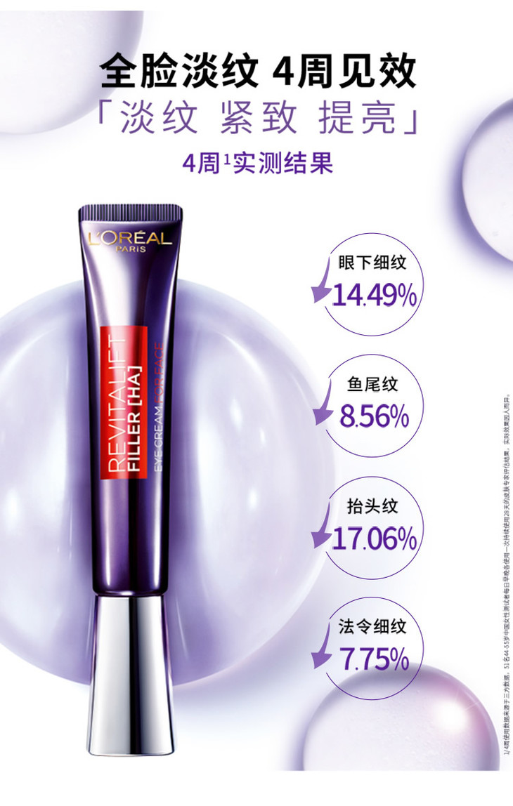 【香港直邮】法国巴黎欧莱雅L'OREAL紫熨斗复颜玻尿酸水光充盈全脸淡纹眼霜30ml(不同版本随机发)