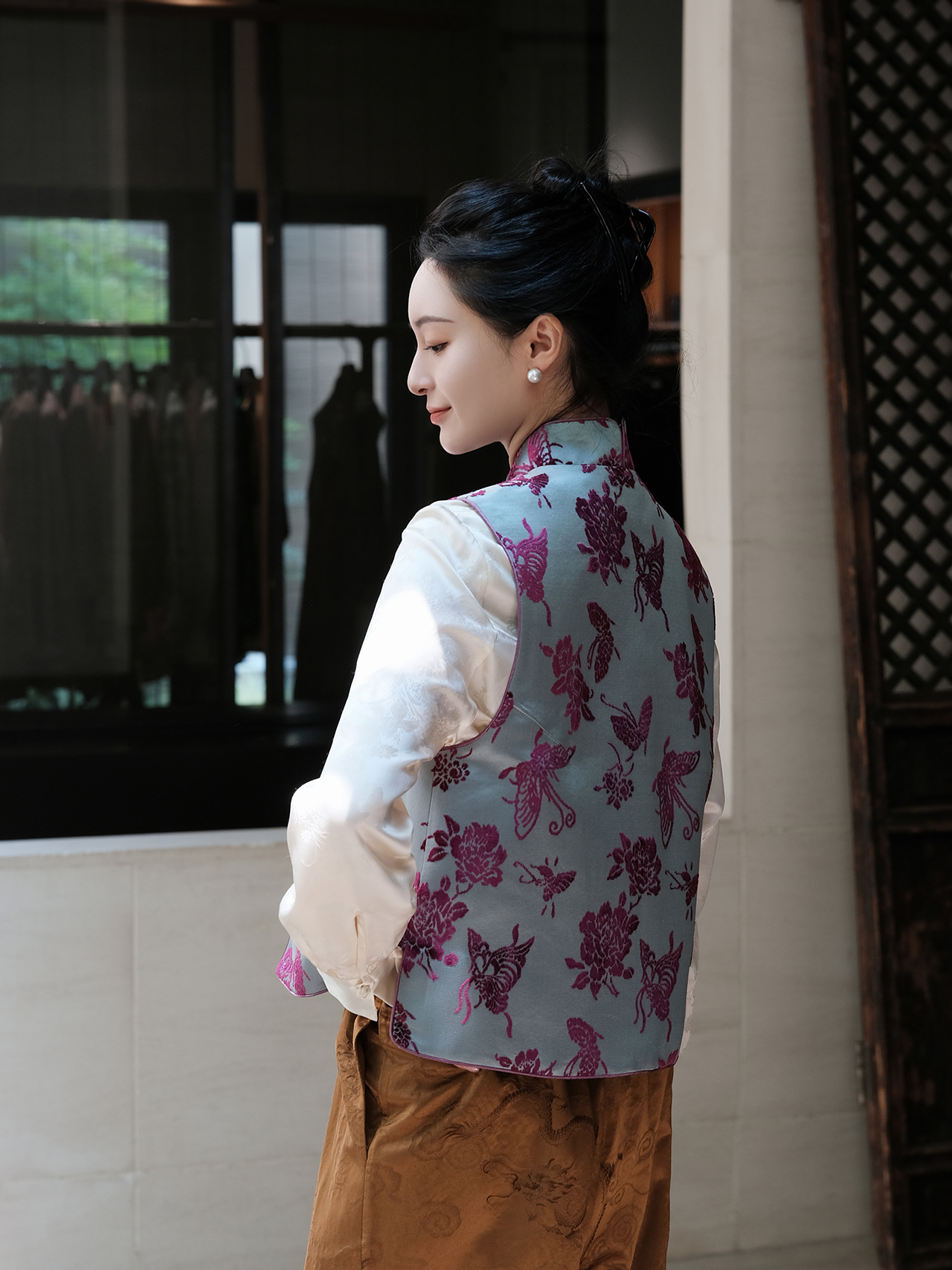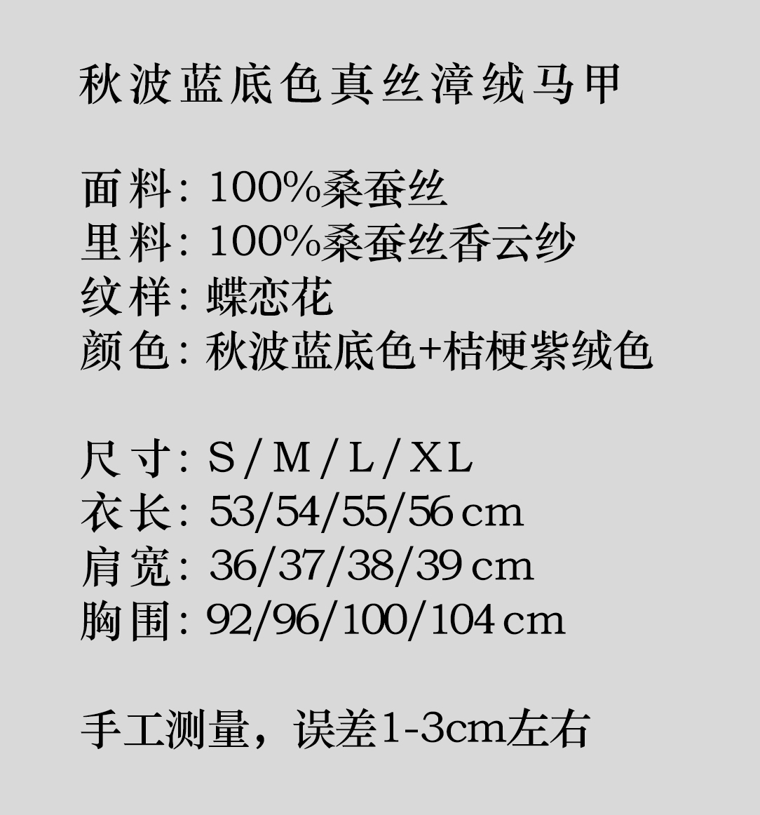 盛唐牡丹 |秋波蓝底色真丝漳绒马甲