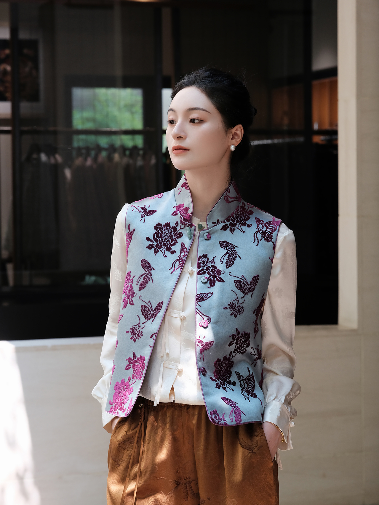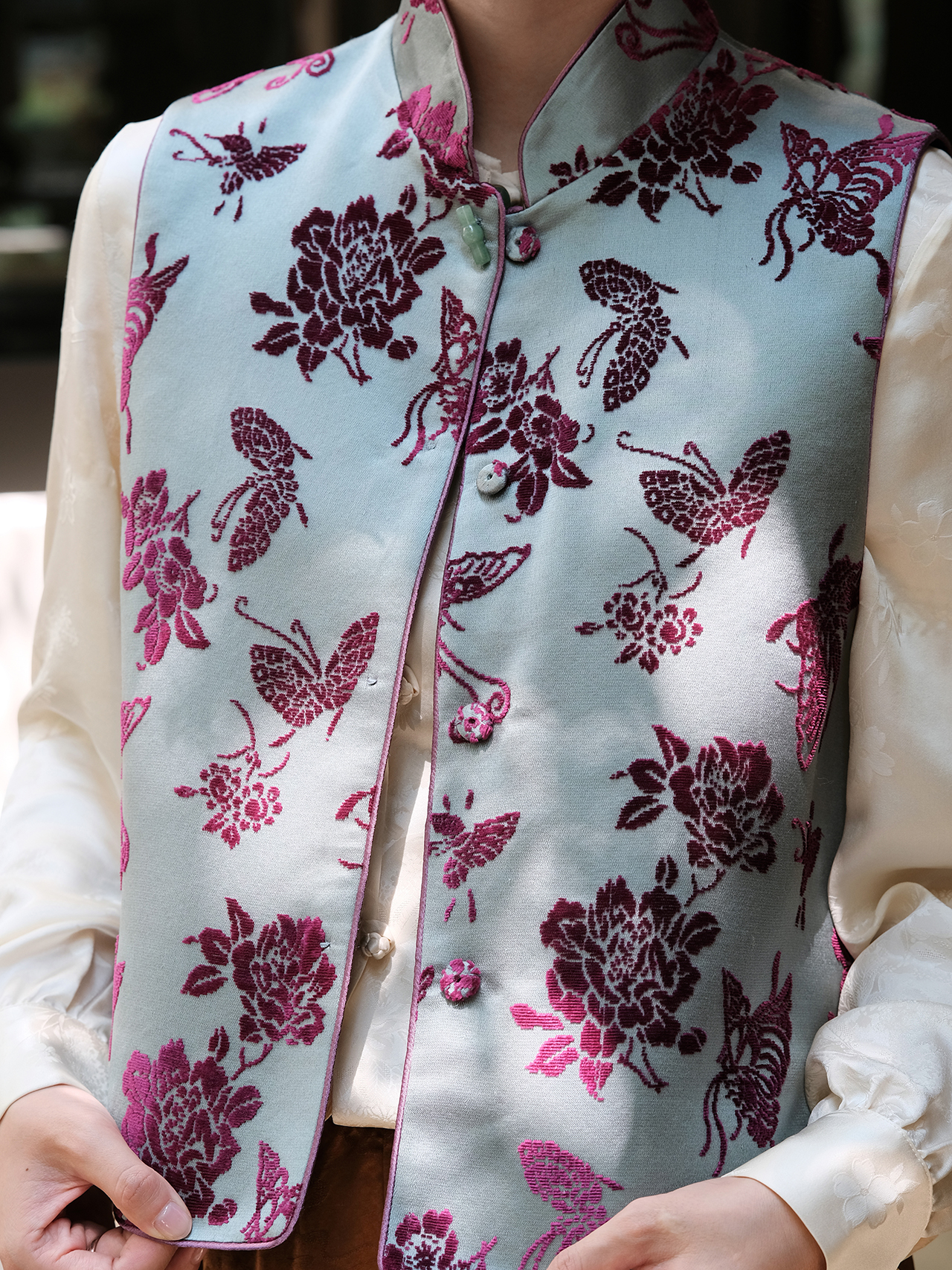 盛唐牡丹 |鹤鹿同春宋锦双面穿马甲