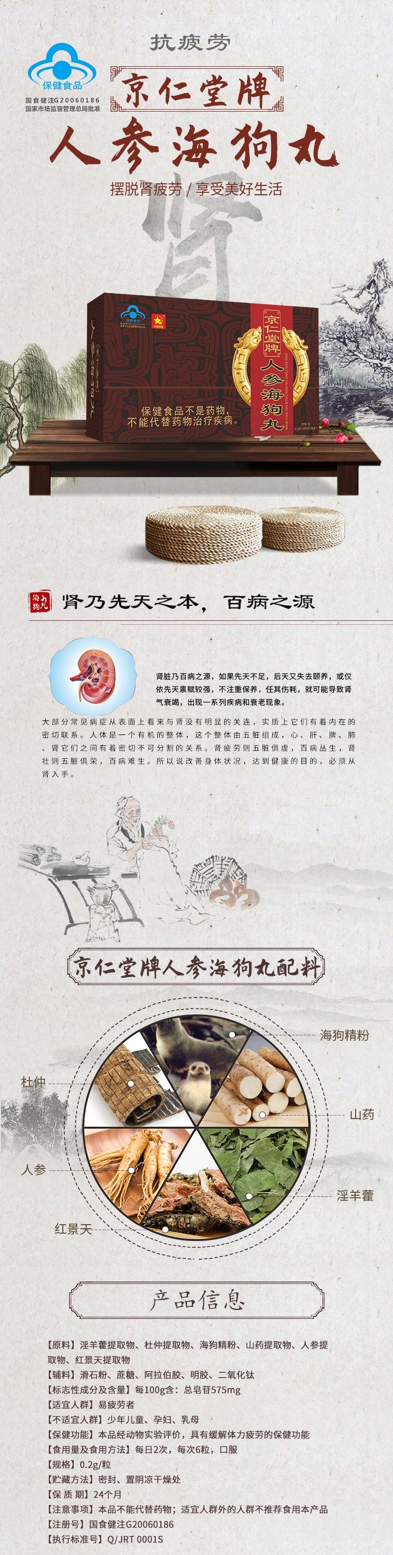 京仁堂牌 人参海狗丸 杜仲海狗yin羊藿人参多种珍稀植物提取 蓝帽认证