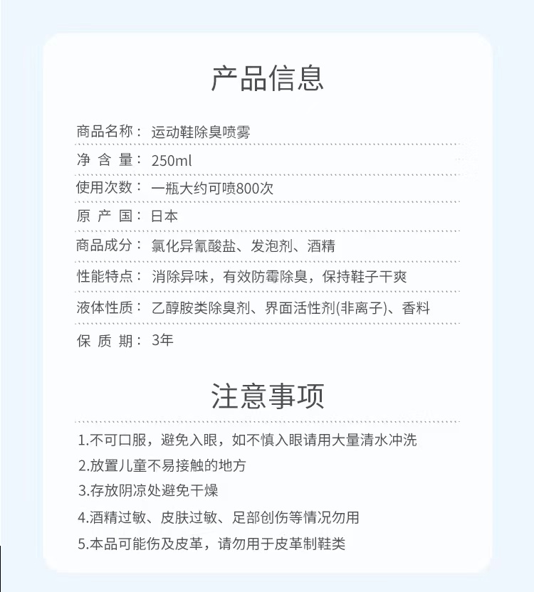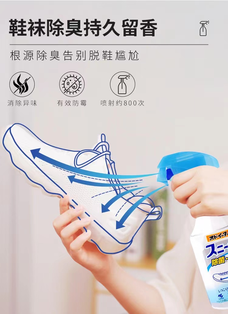 日本小林制药鞋子除臭剂鞋柜除味防臭脚防霉喷雾250ml/瓶