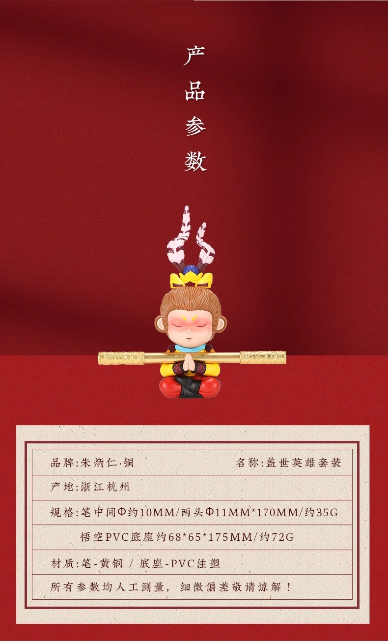 朱炳仁铜 盖世英雄主题(钢笔)套装礼盒 铜笔+pvc注塑底座-分销