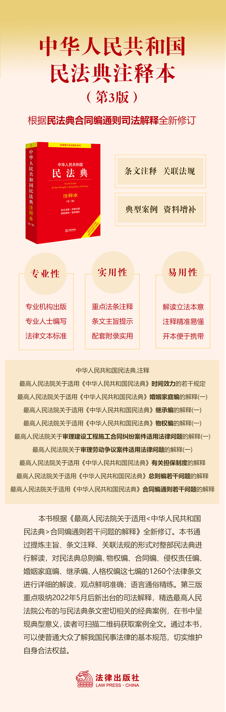 专业性:专业机构出版,专业人士编写,法律文本标准
