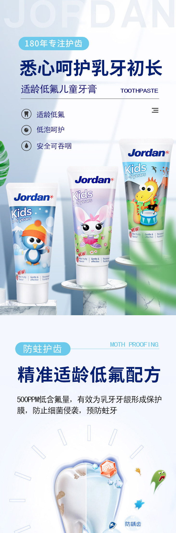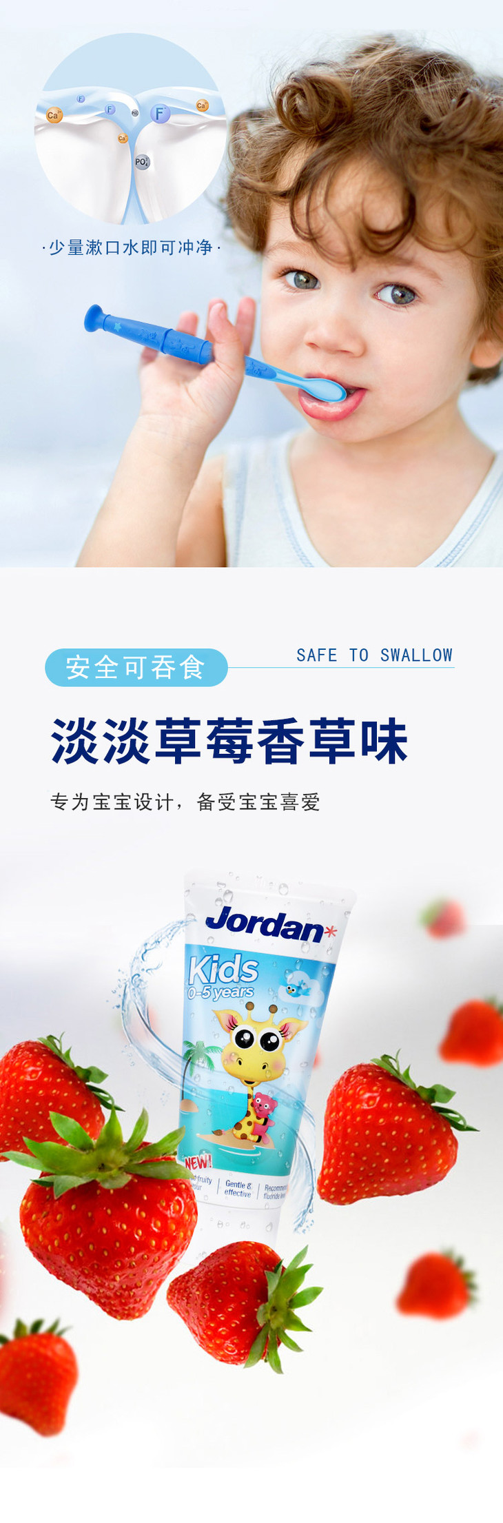 挪威Jordan树莓味儿童牙膏(0-5岁)(21001032)【21001032】