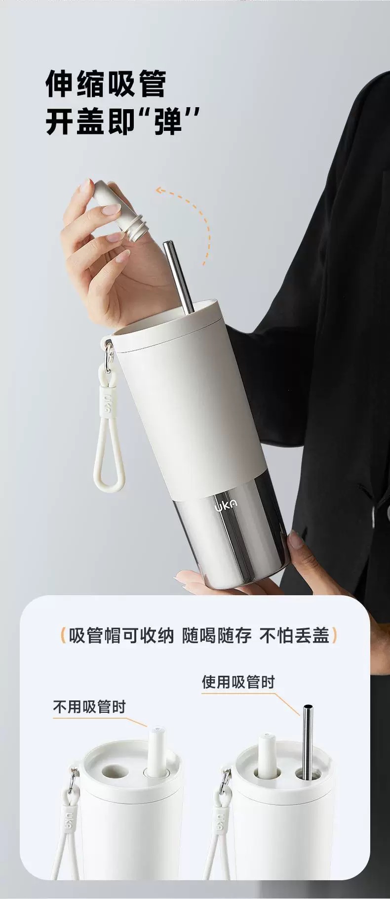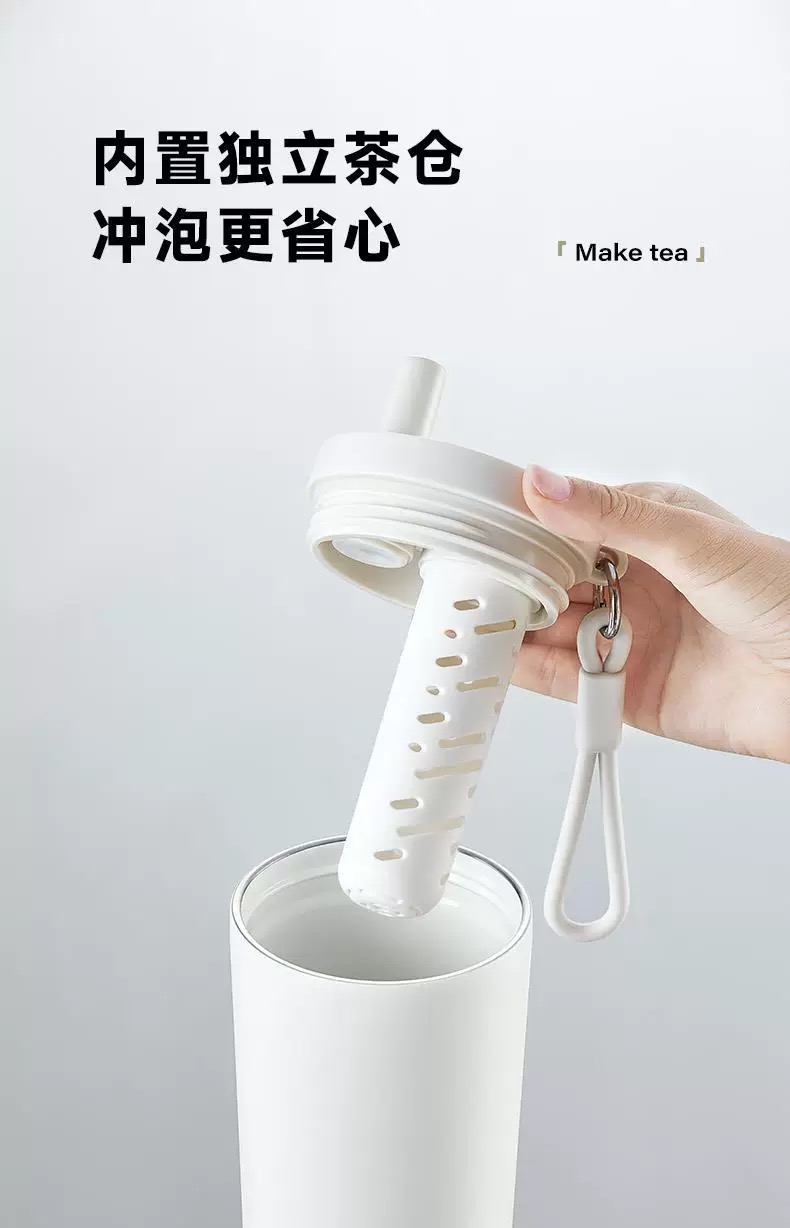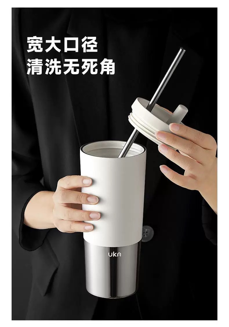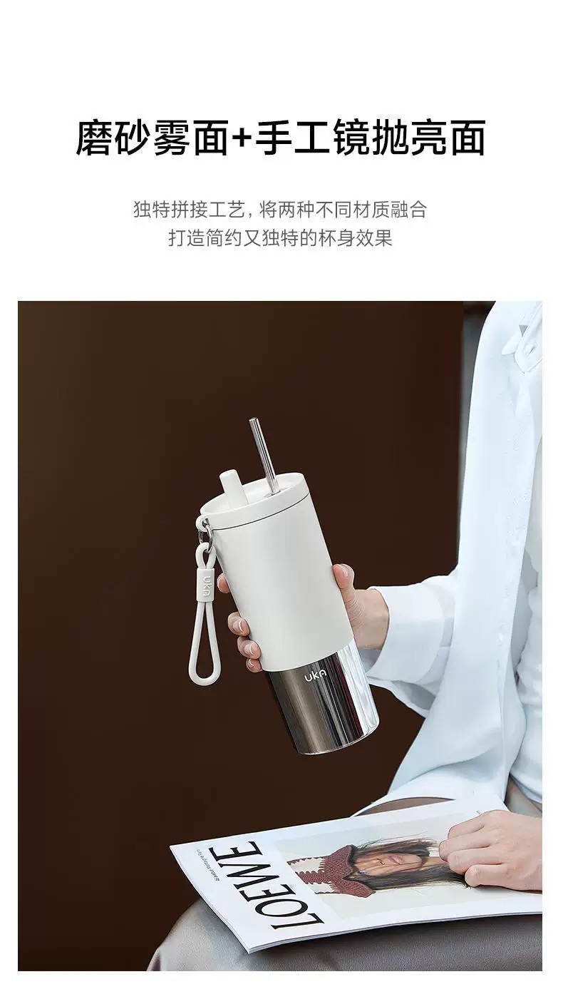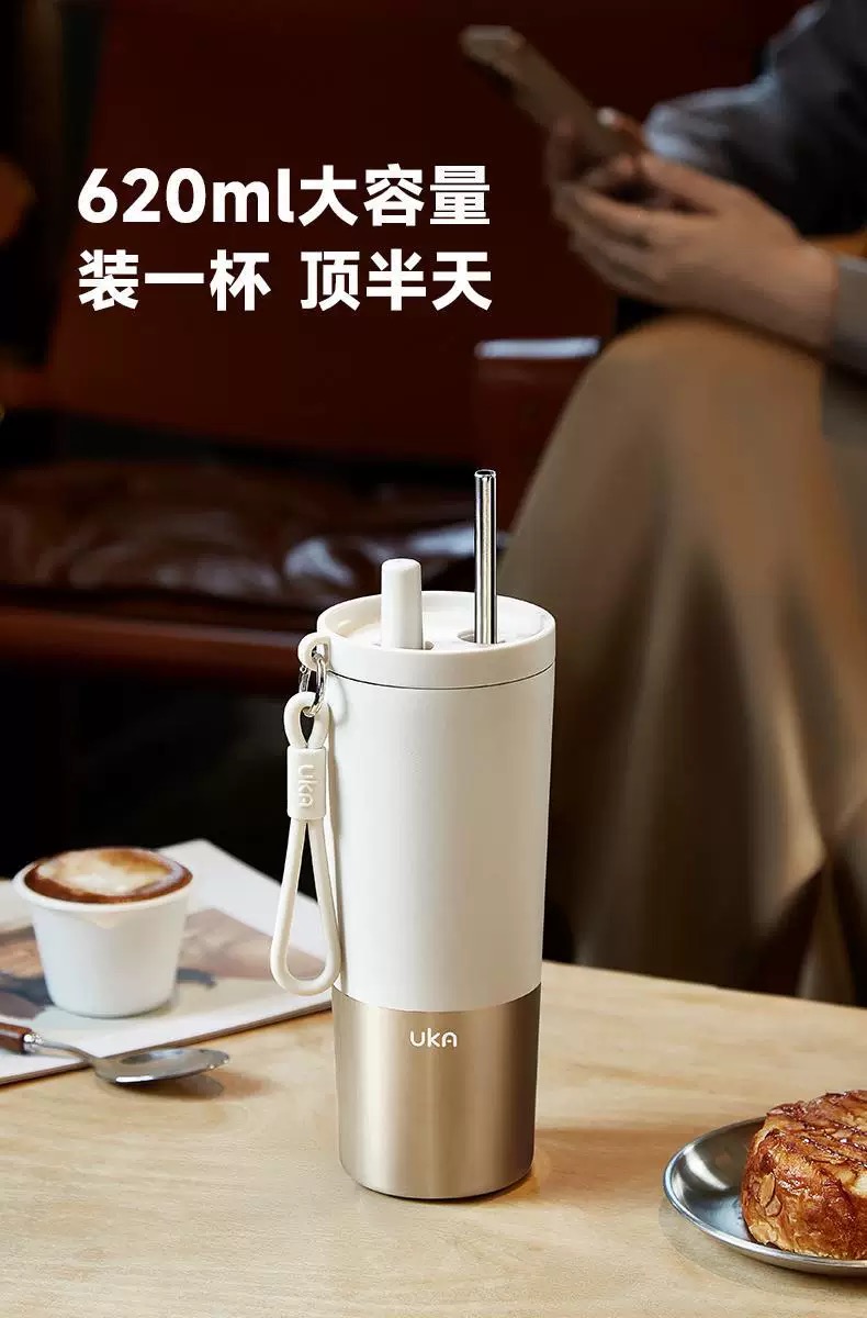 【6F】多样屋UKA幻银保温杯大容量双饮吸管杯 随行杯 陶瓷保温杯茶漏保温保冷/620ml