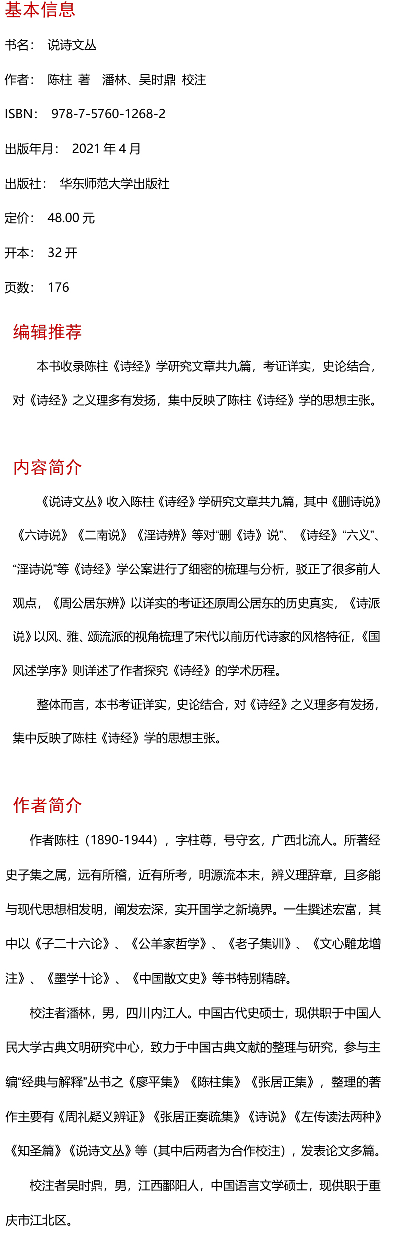 说诗文丛 六点分社 诗经学研究 中国传统经典与解释 国学著作 古典学研究 陈柱著 潘林 吴时鼎校注