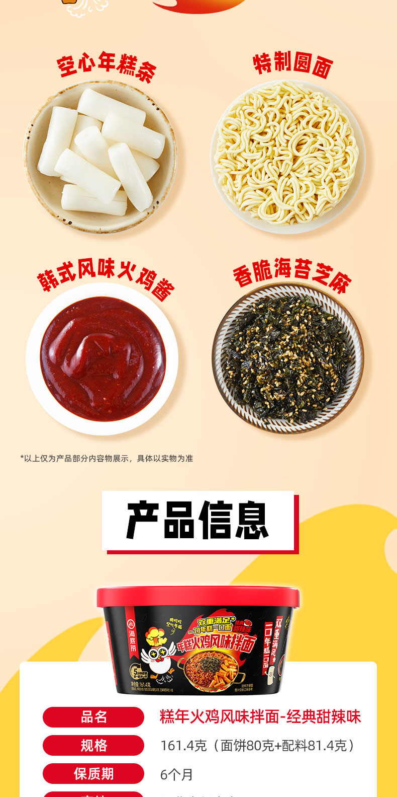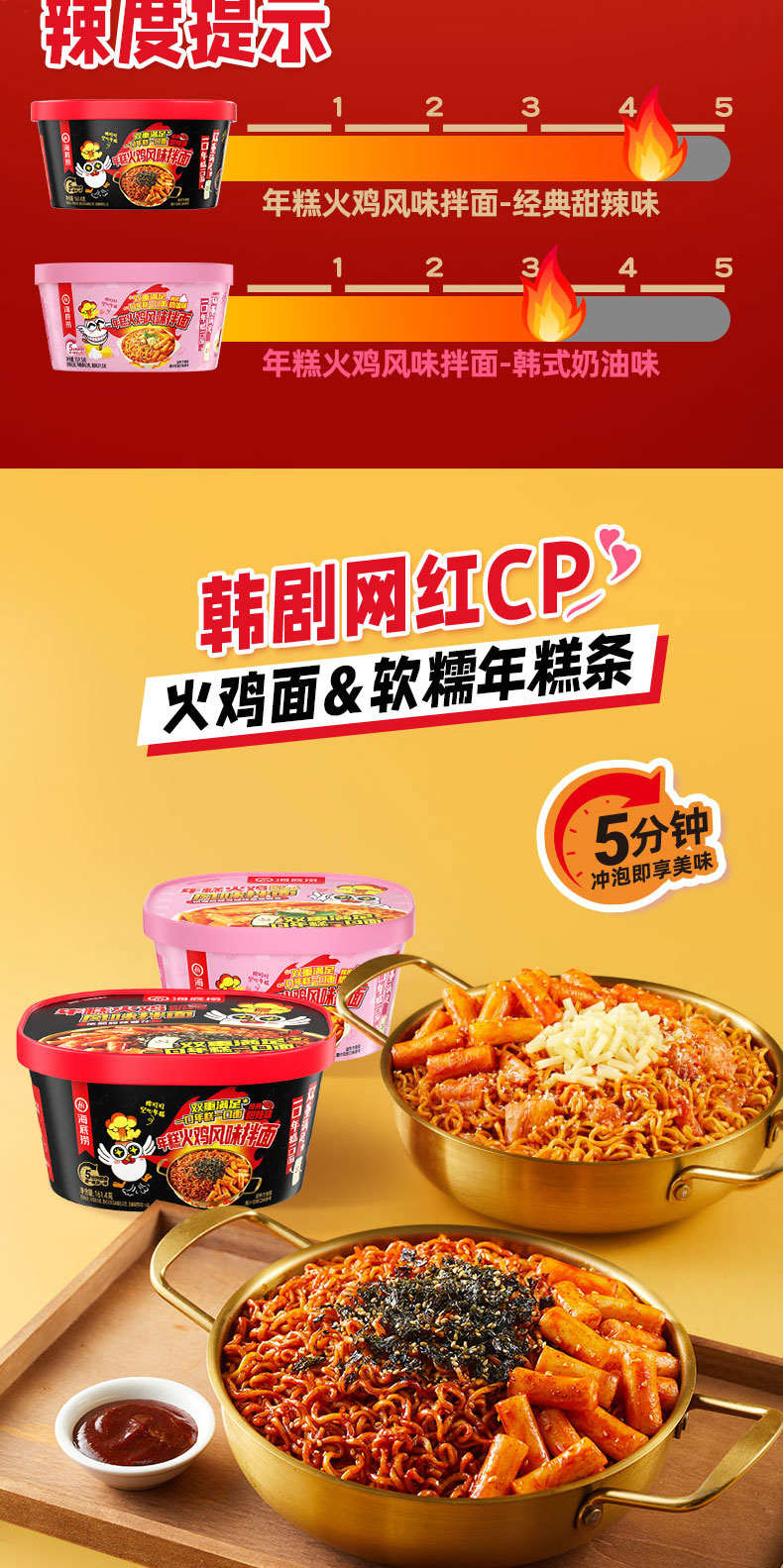 【年糕火鸡面】年糕火鸡面拌面桶装零食方便面速食免煮宿舍夜宵拌面盒装