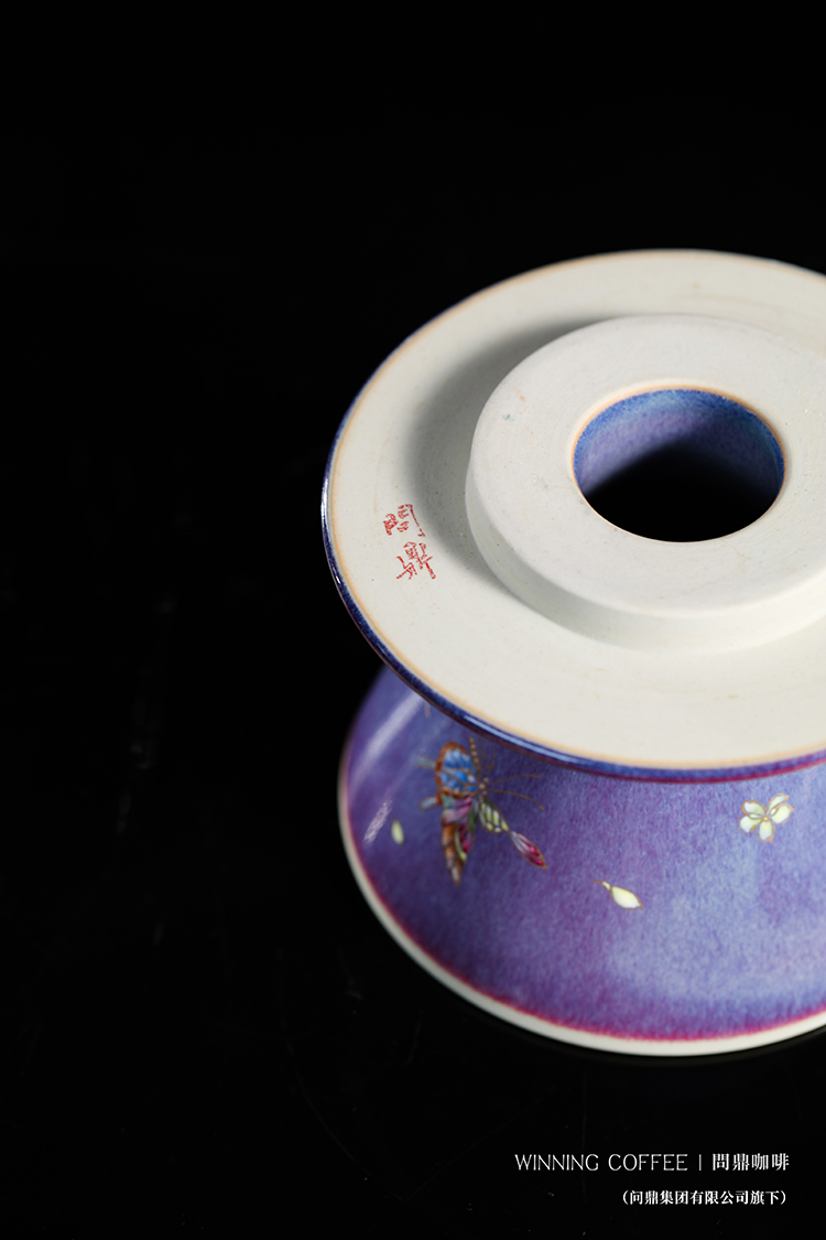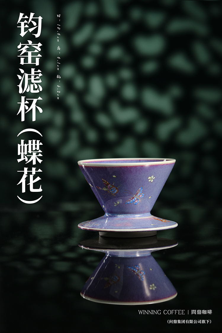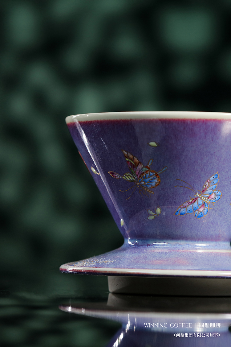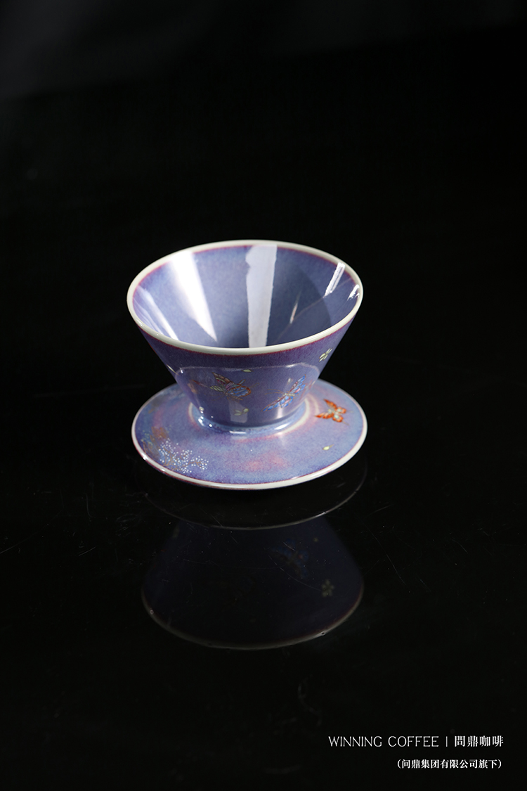 问鼎咖啡钧瓷带托滤杯 (蝶花)