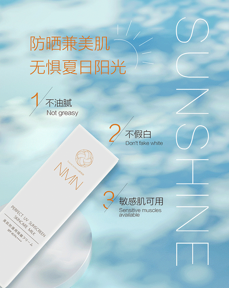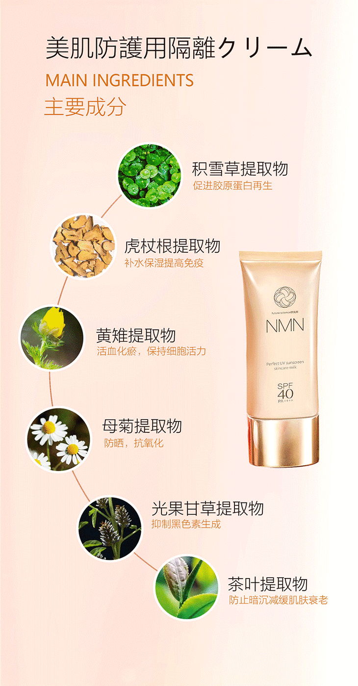 日本NMN亮肤防晒霜SPF40隔离养肤水润清爽不油腻防水抗uv50g