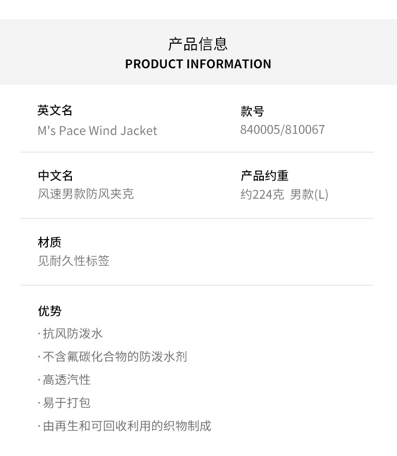 HOUDINI胡丁尼 Pace Wind Jacket 风速 男款户外防风夹克840005/810067